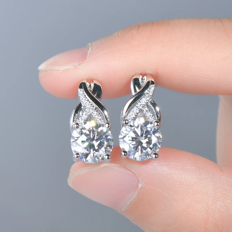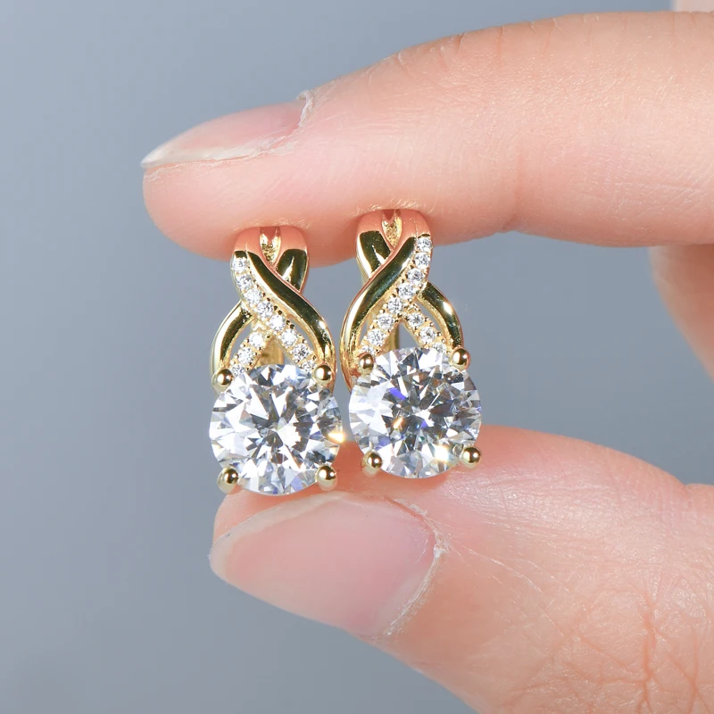 OXTAO 925 Sterling Silver Moissanite Infinity Hoop Earrings for Women 14K Gold Plated Wedding Party Jewelry Christmas Gifts
