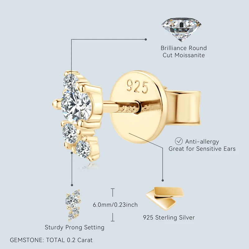 OXTAO D Color Moissanite Butterfly Stud Earrings for Women 925 Silver Wedding Fashion Jewelry Gift with Certificate