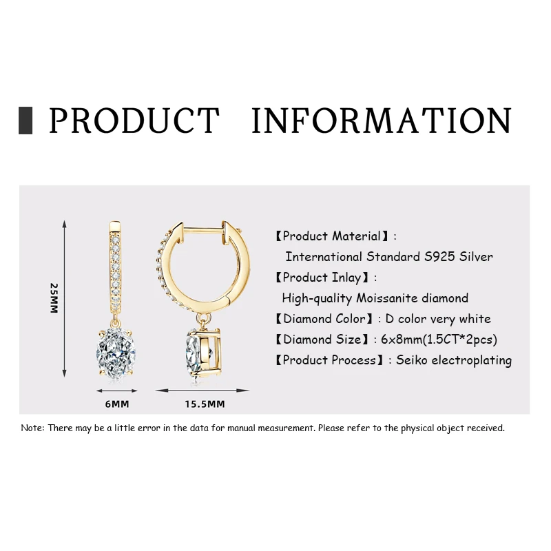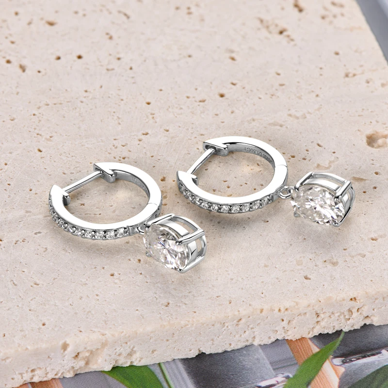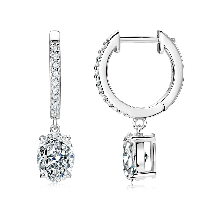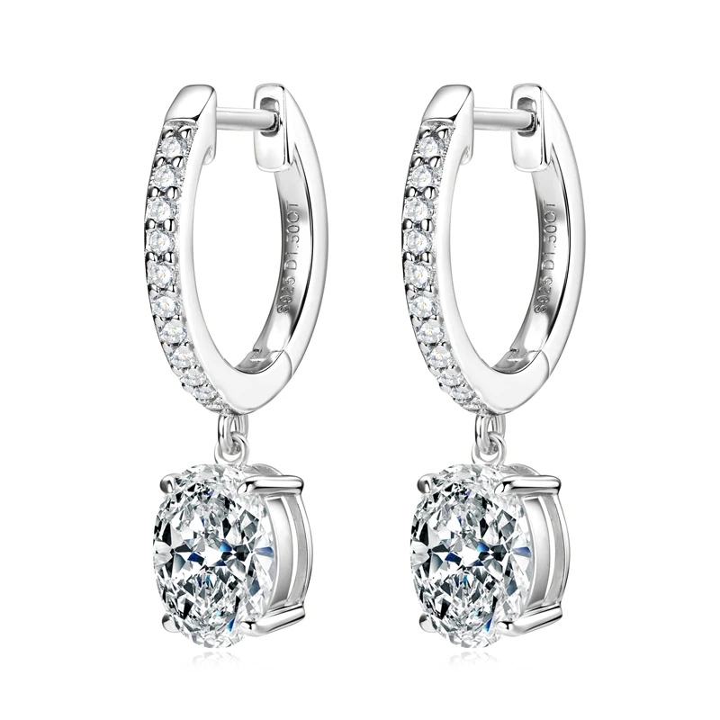 OXTAO Hoop Earings 100% 925 Sterling Silver Oval Cut D Moissanite Drop Dangle Earrings Huggie Wedding Jewelry Gift Wholesale