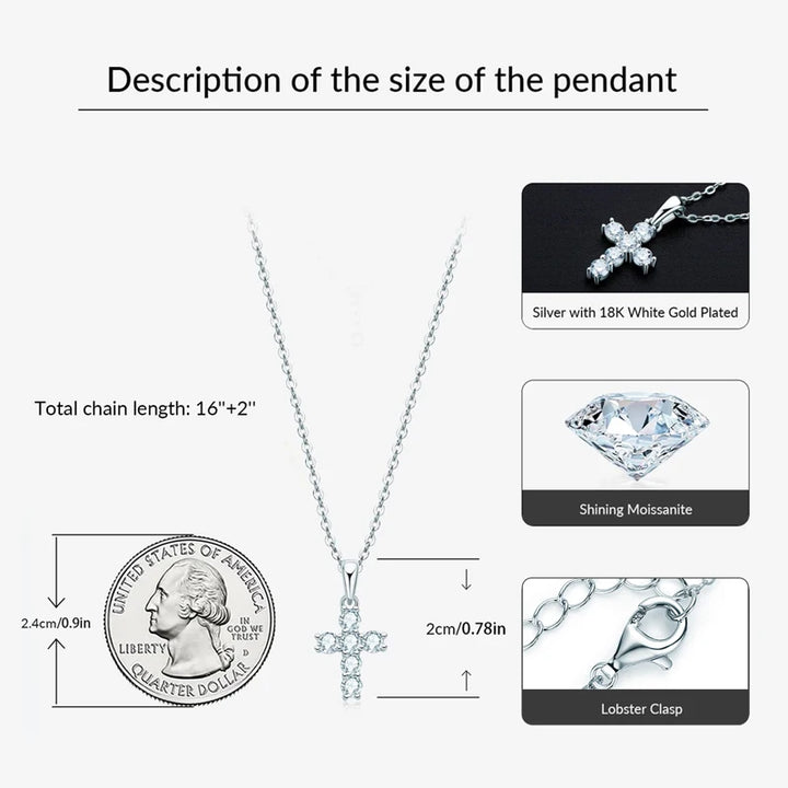 OXTAO Moissanite Four Prong Cross Ladies Pendant Necklace 925 Sterling Silver Hiphop Religion Pendant Fine Jewellery for Women