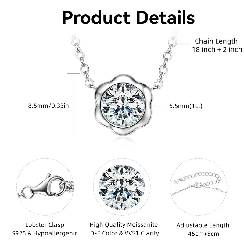 OXTAO Real Moissanite Pendant Necklace For Women D Color Round Diamond Necklace Sterling 925 Silver Classic Wedding Jewelry
