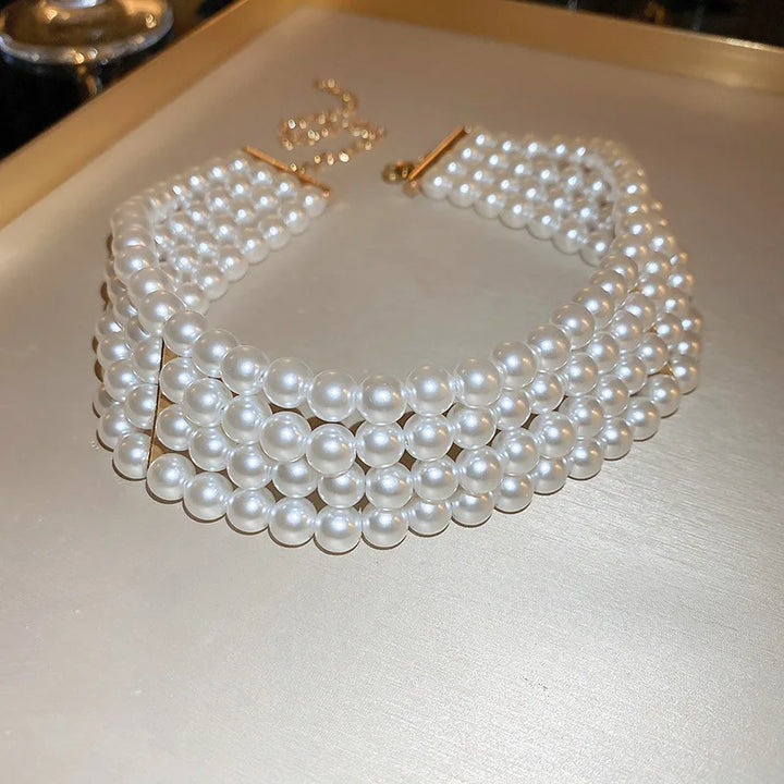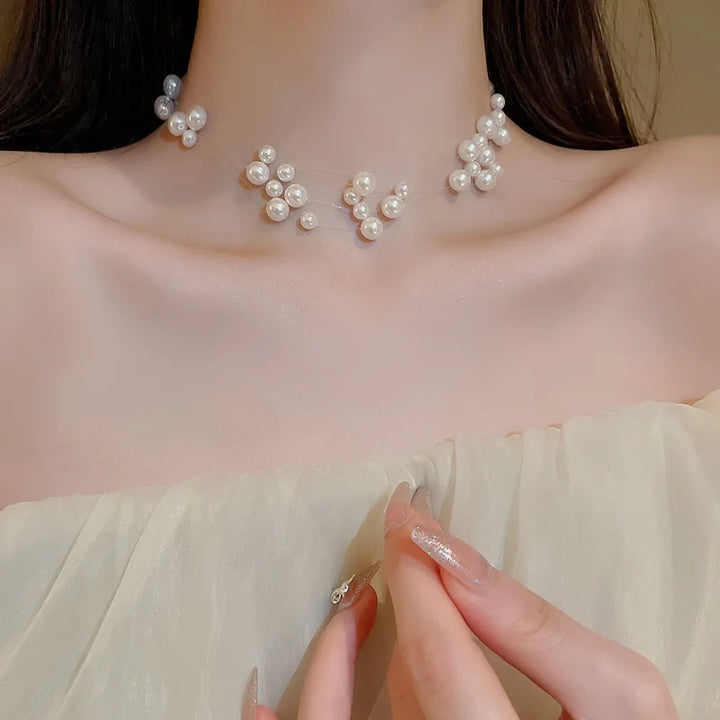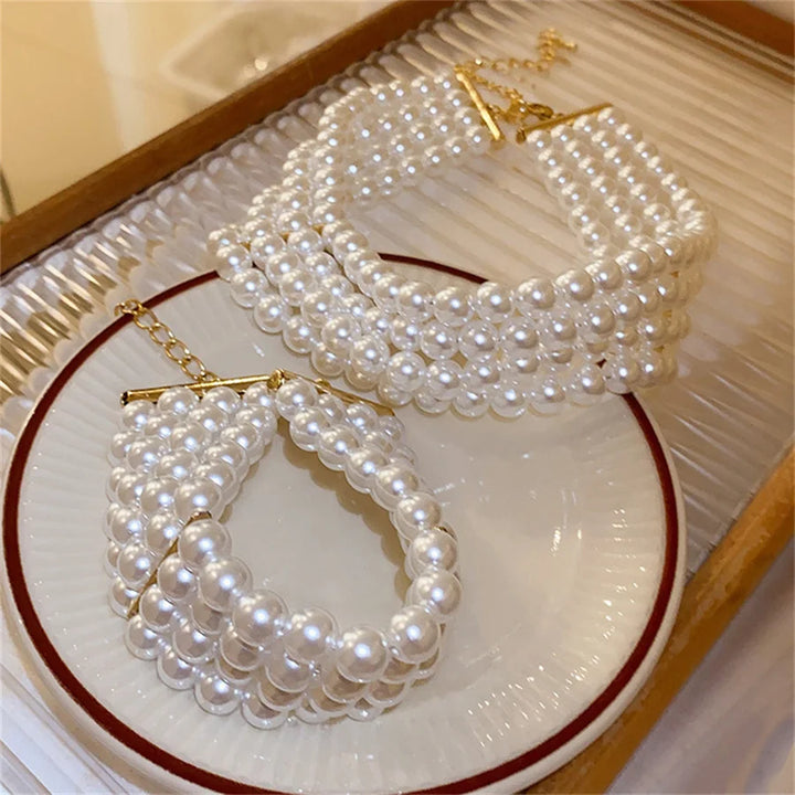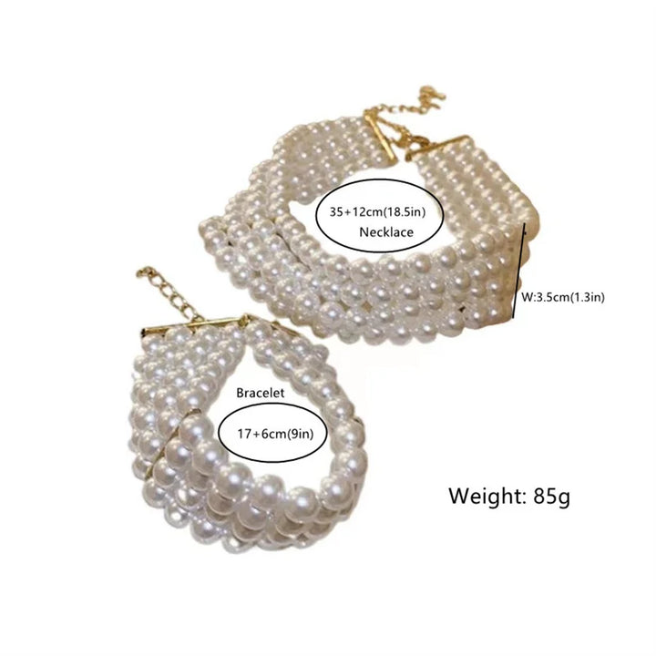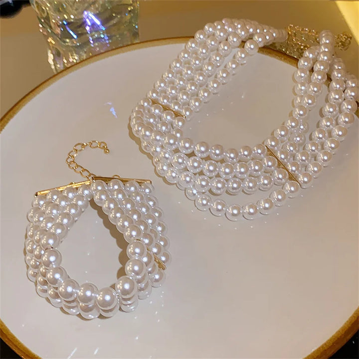 Pearl Necklace Bacelet Sets Geometric Necklace Women Solid Color Fashion Weddings Bride Jewelry Accessories