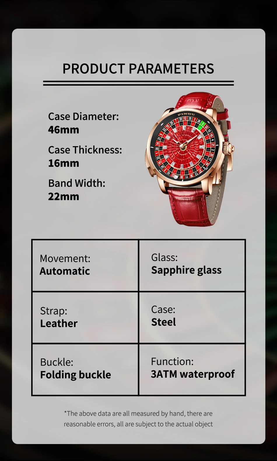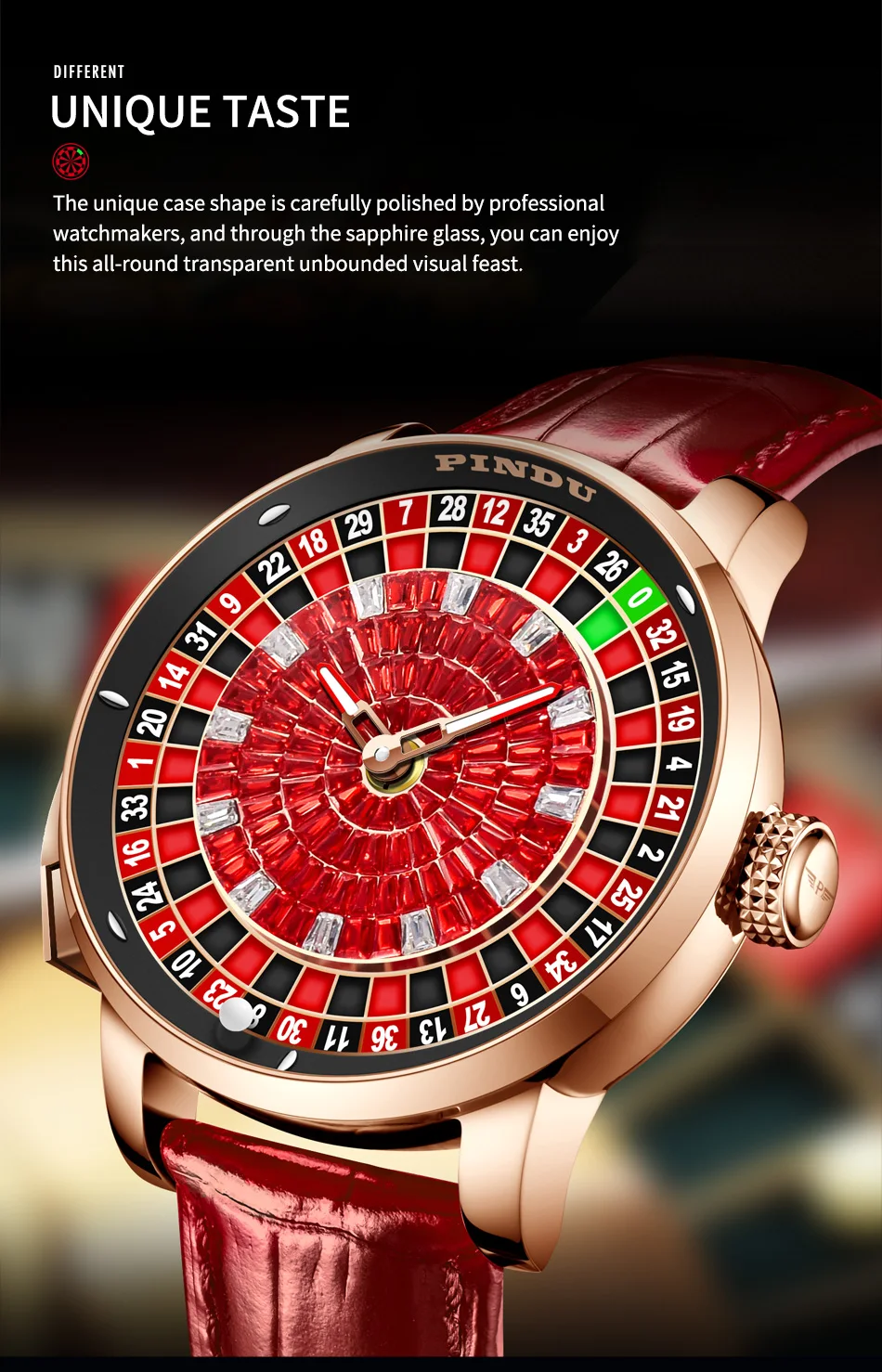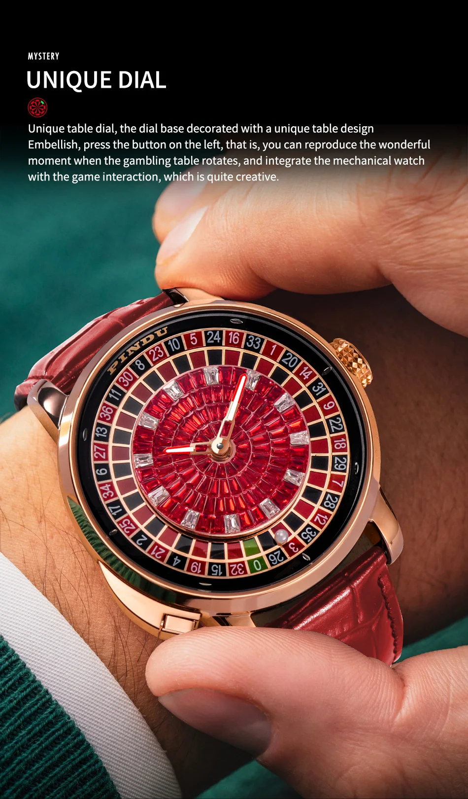 PINDU Men's Luxury Mechanical Fashion Watch NH35 Waterproof Sapphire Glass Roulette Top Brand Rotating Feature
