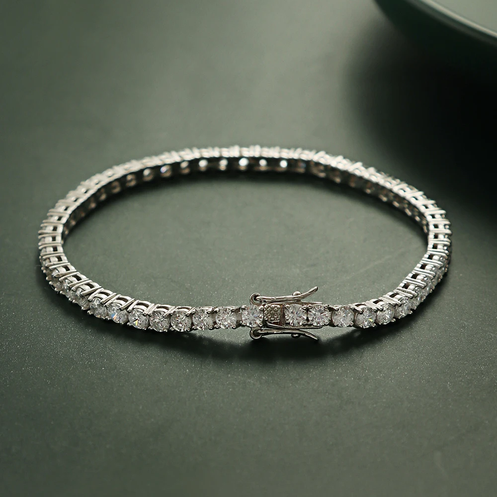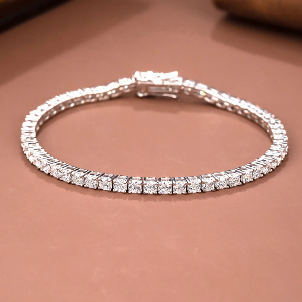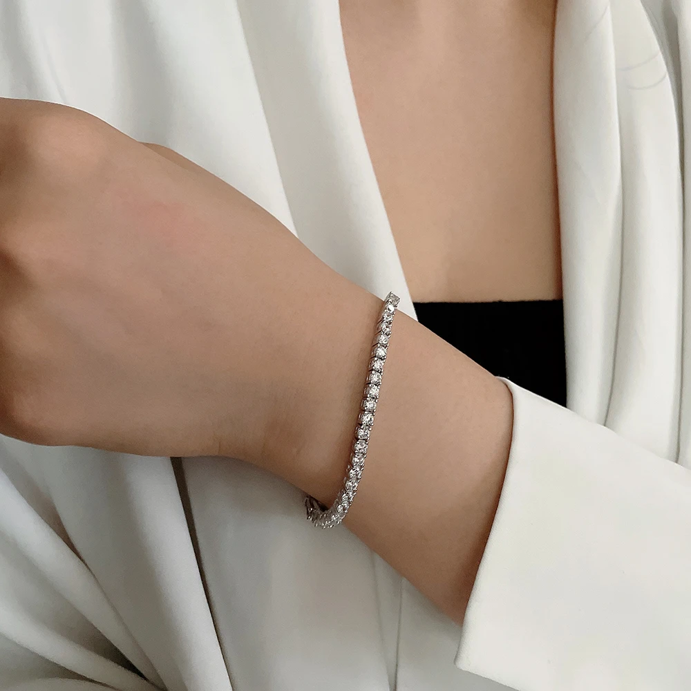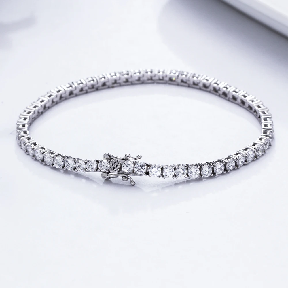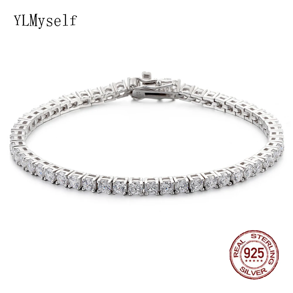 Pure Silver Of 14-21 CM Tennis Bracelet Jewelry Chain Pave 3mm 5A CZ Eternity Stunning Hip Hop Rock Real 925 Fine Jewellery