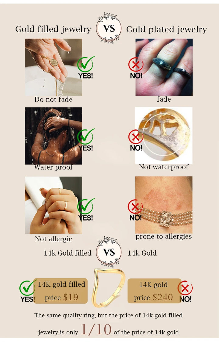 Since gold filled is mechanically bonded onto the base metal instead of plated, the gold doesn’t rub off, and it has