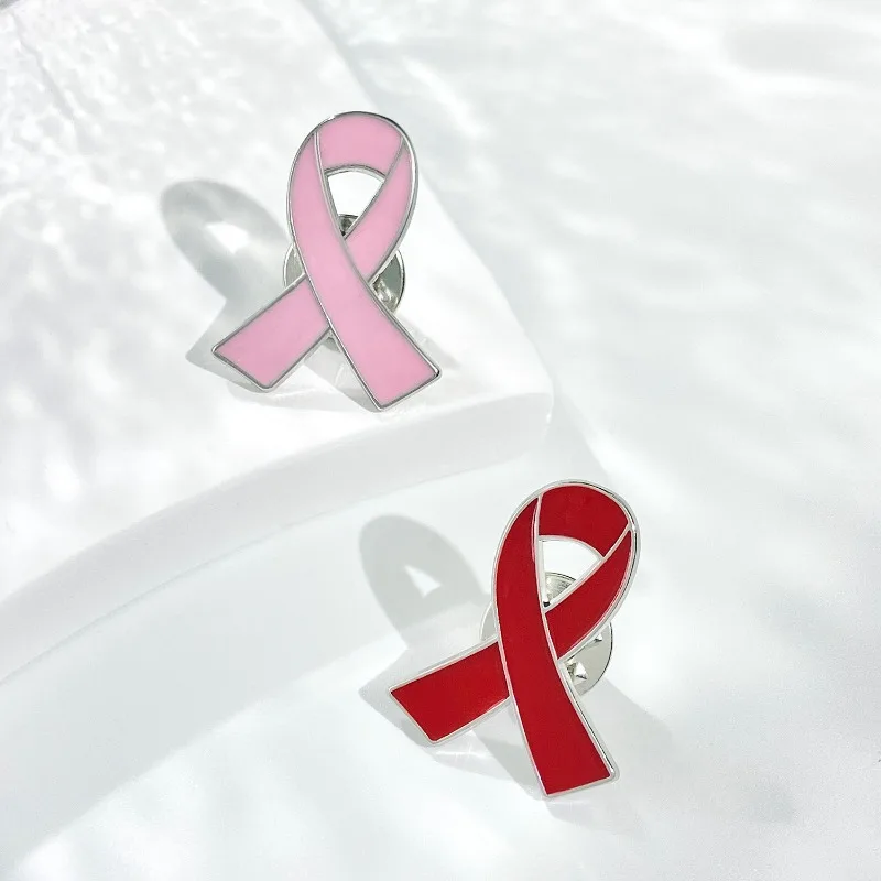 Red Awareness Ribbon Pins Love Care HIV AIDS Pink Ribbon Against Breast Cancer Lapel Badge Multi-coloured Dripping Oil Brooch
