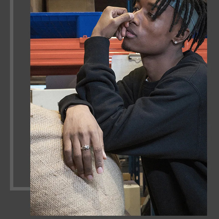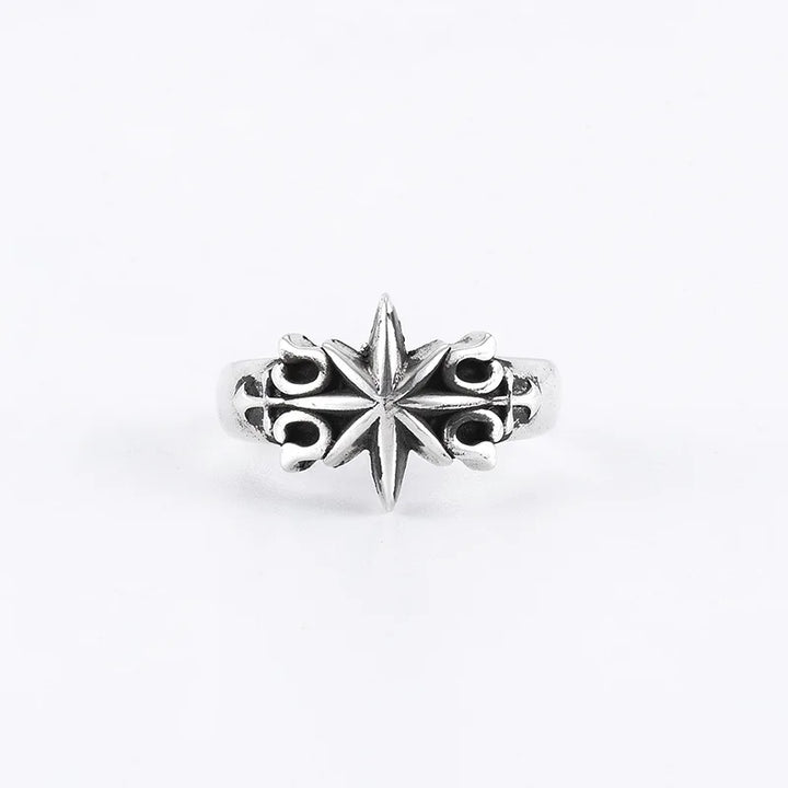 Retro Six Point Star Ring For Men Silver Color Punk Gothic Adjustable Open Ring Rock Handmade Unisex Jewelry Accessories Gift