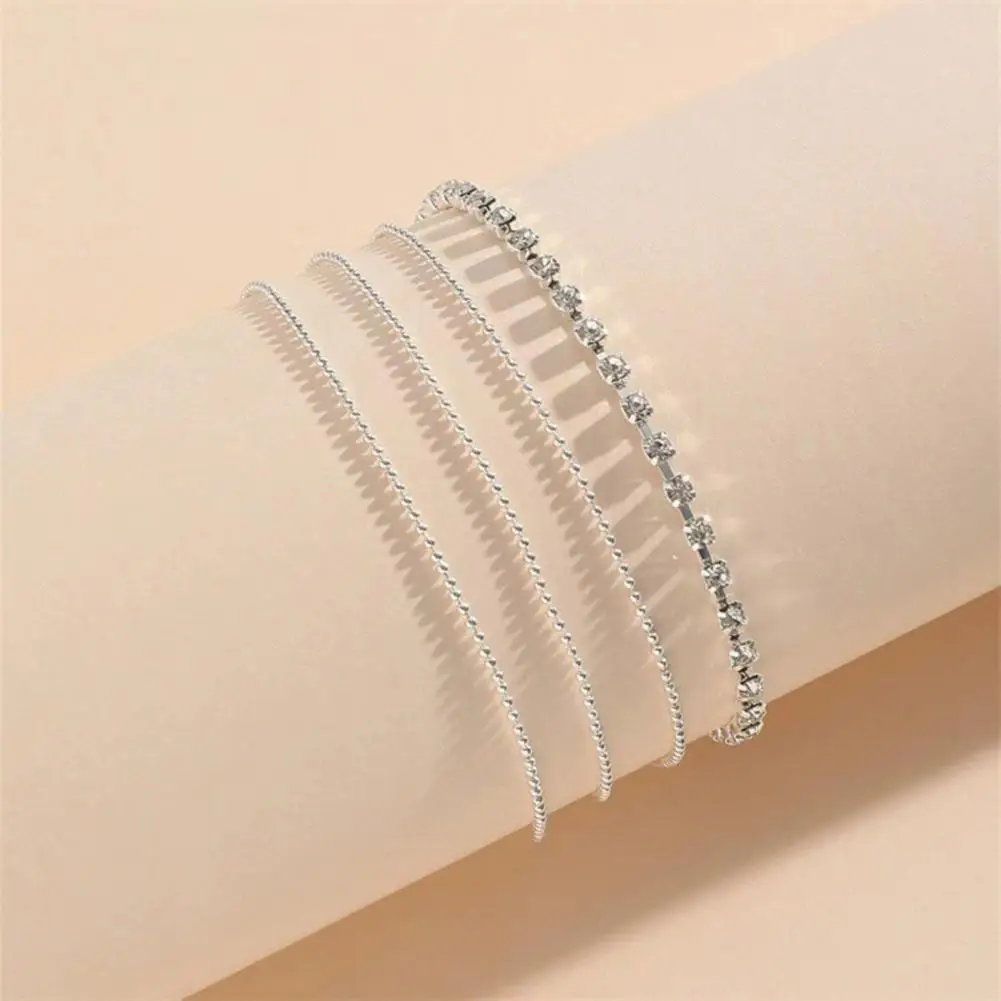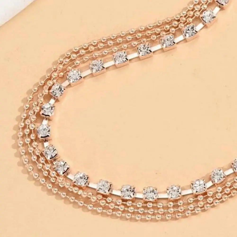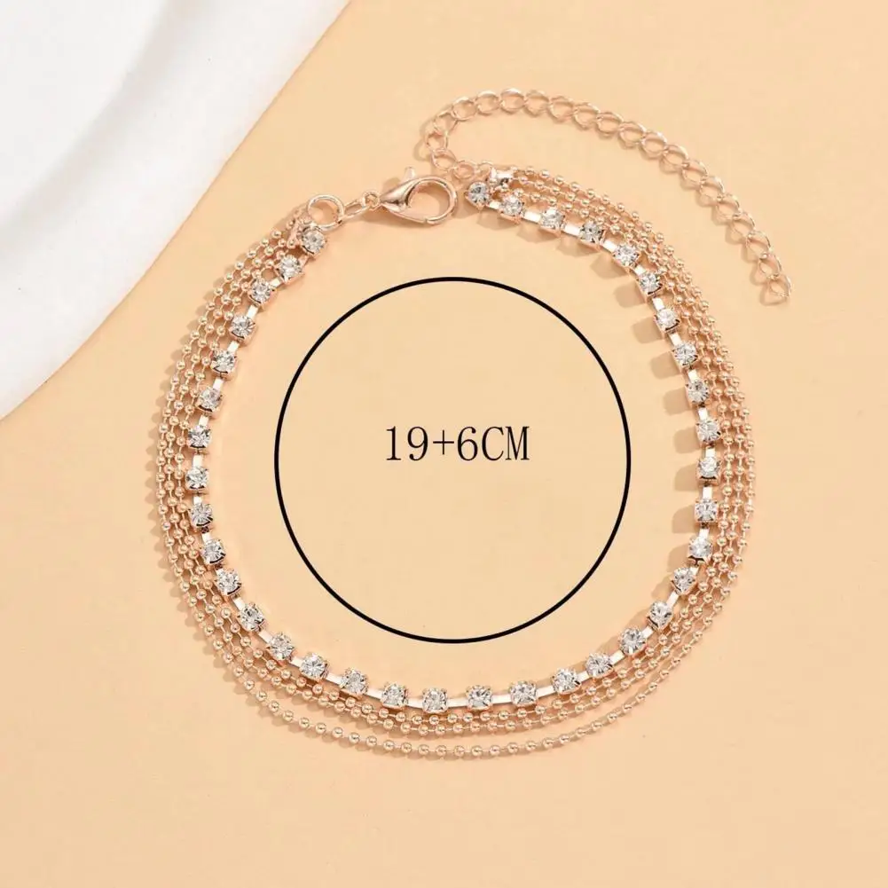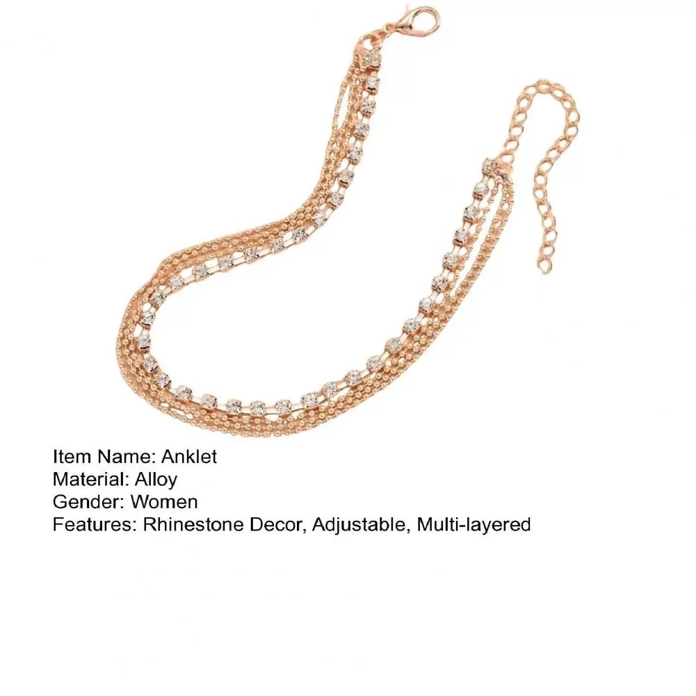 Rhienstone Anklet Alloy Anklet Elegant Multi-layered Rhinestone Women's Anklet with Adjustable Length Polished for Birthdays