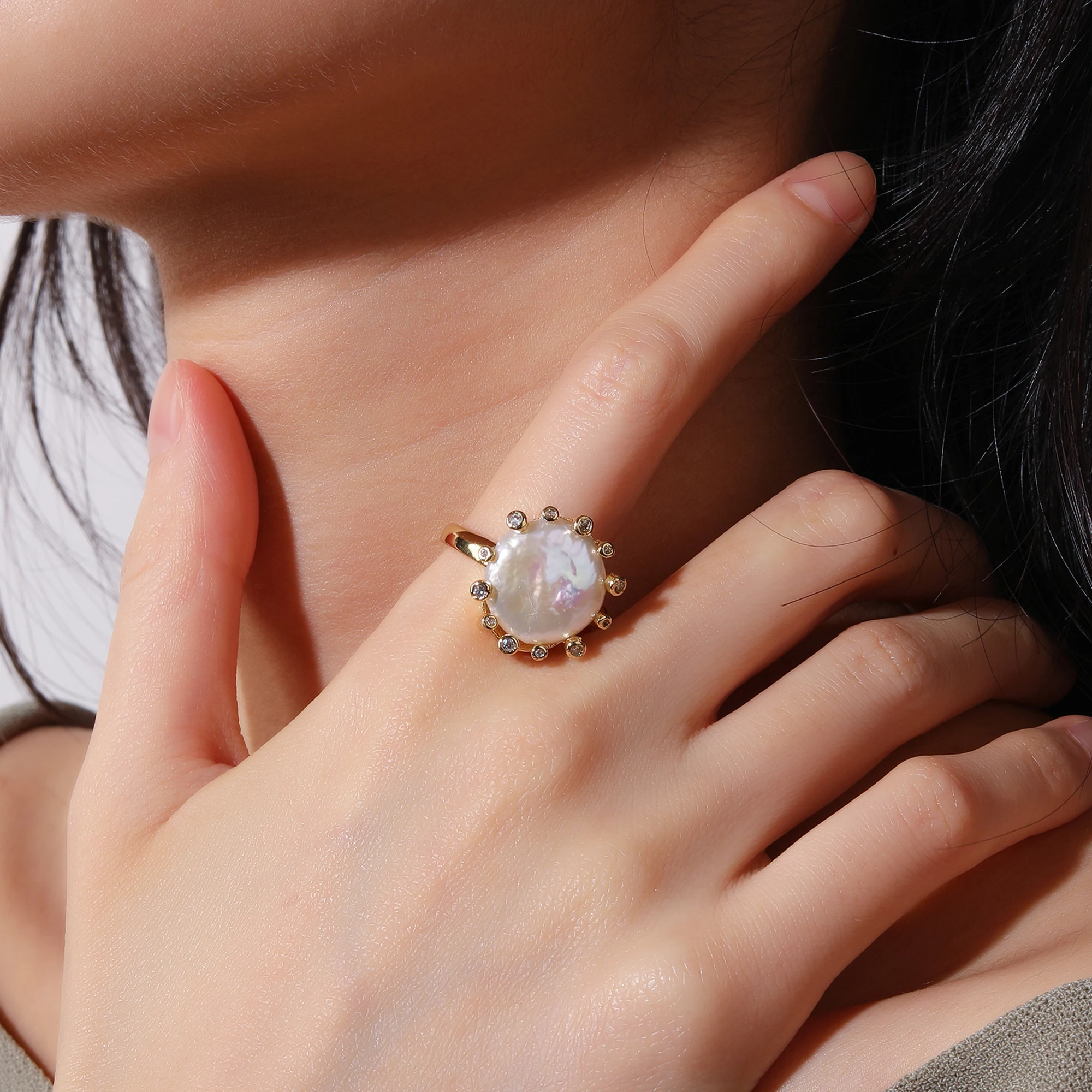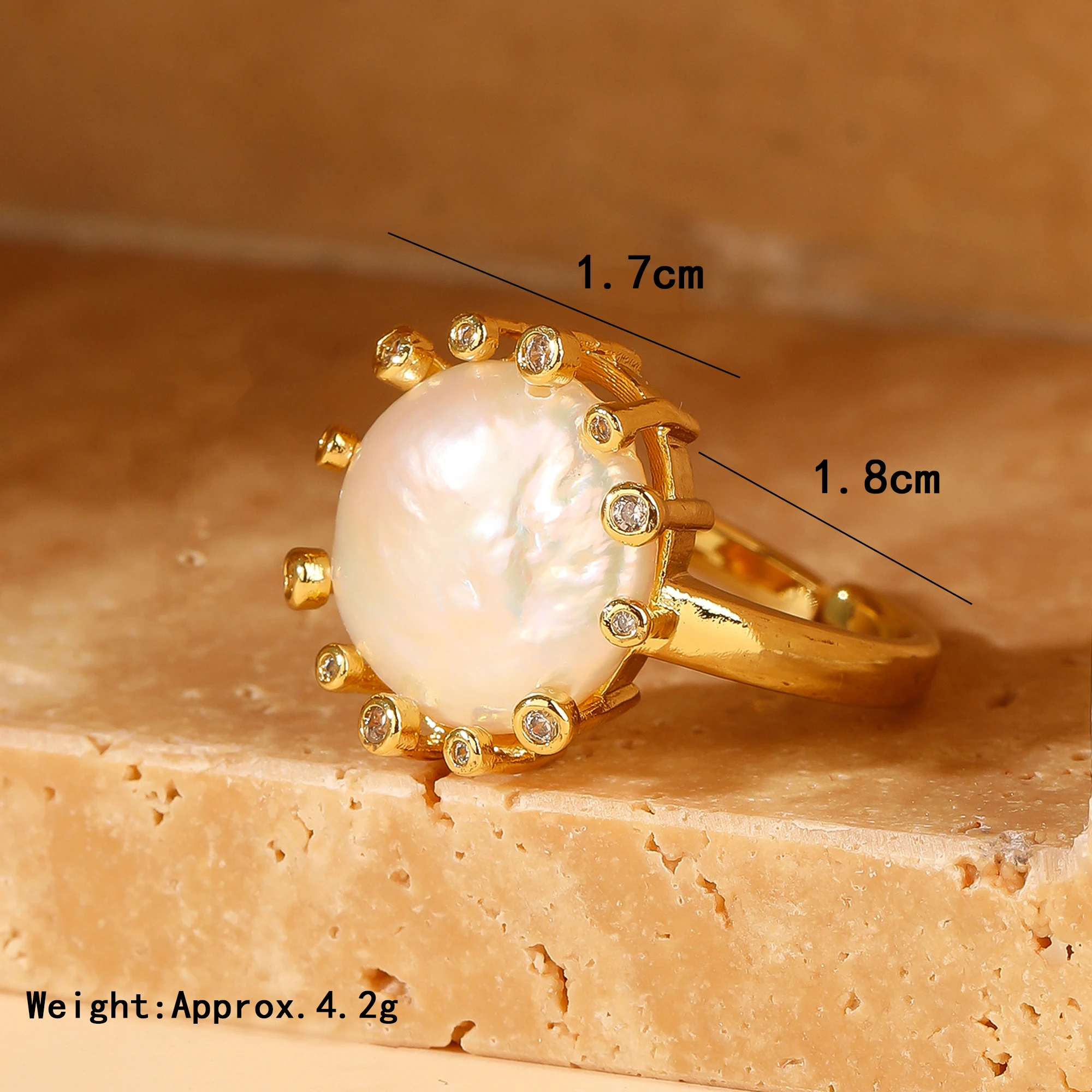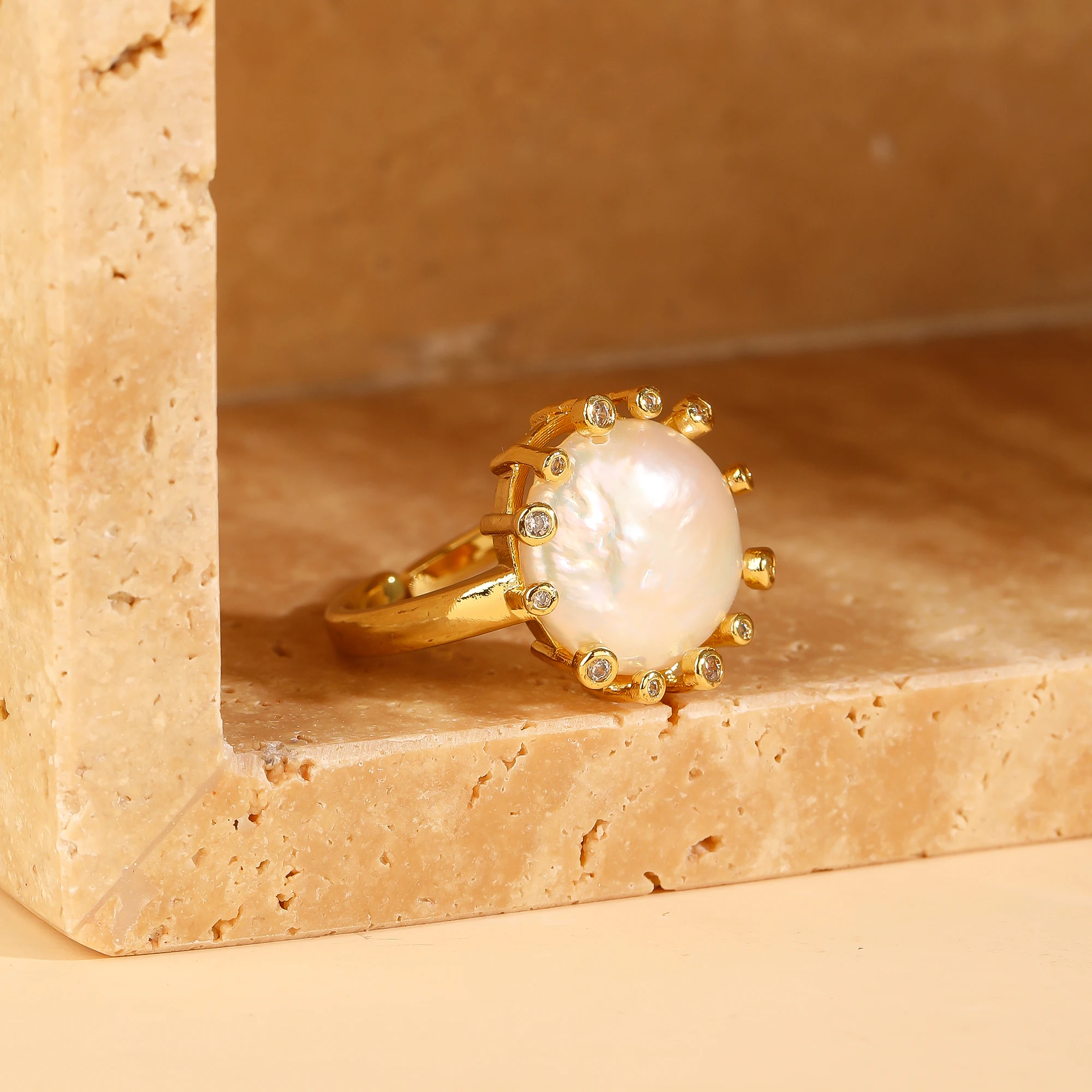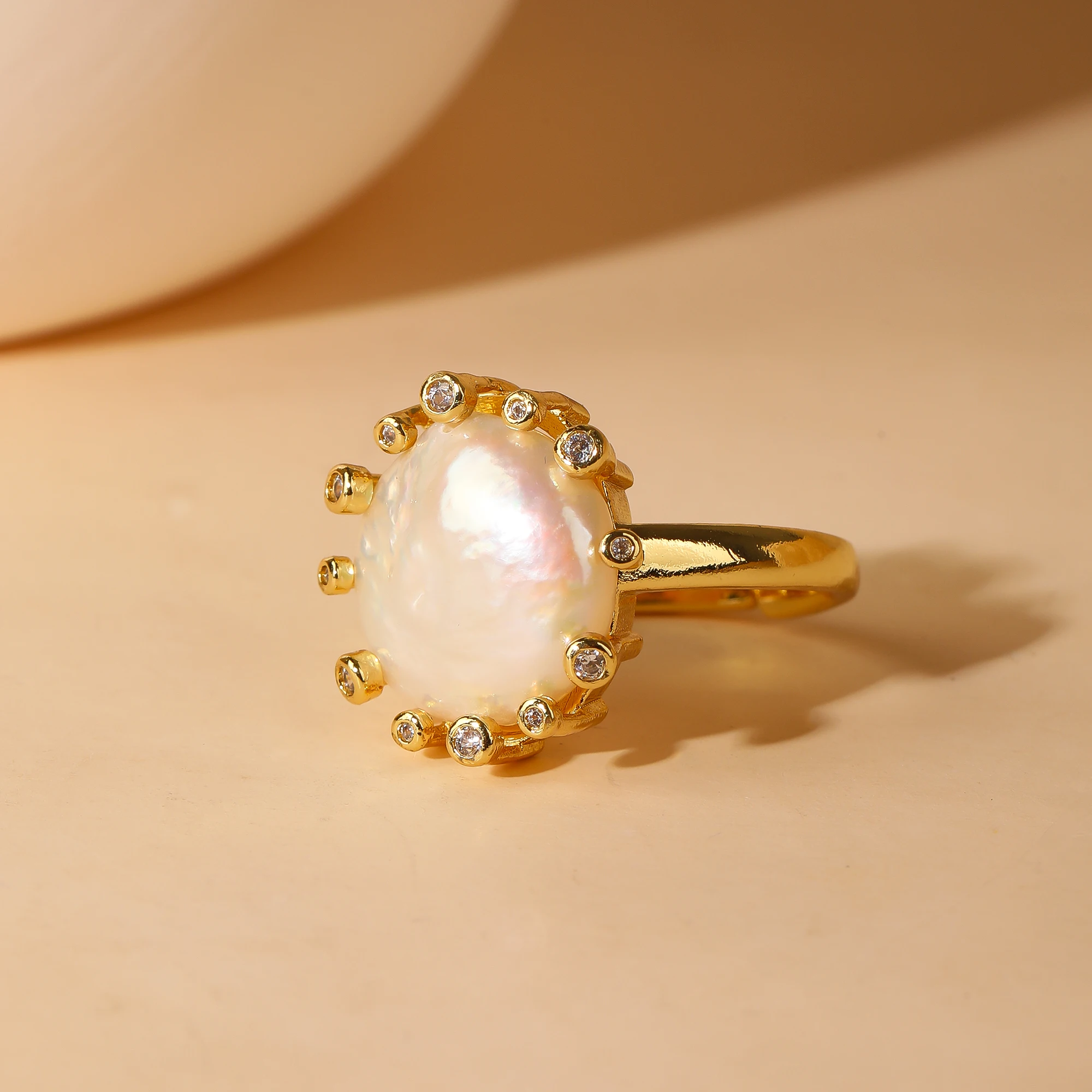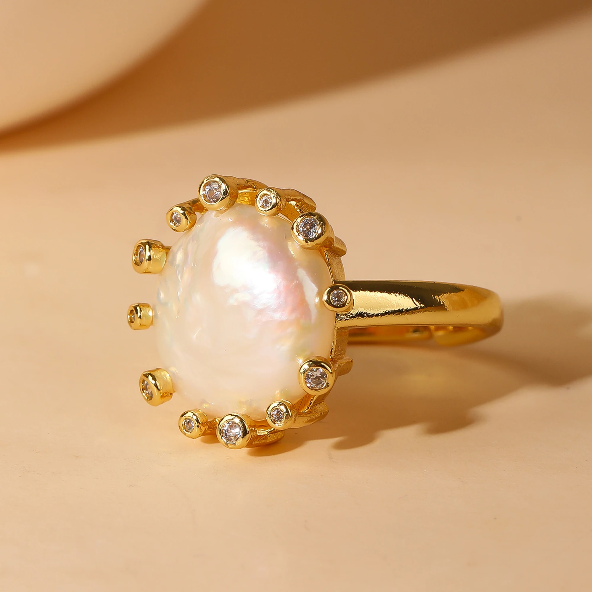 Romantic Style Women Freshwater Pearl Ring With 18K Real Gold Plated Delicate Irregular Setting Jewelry Finding