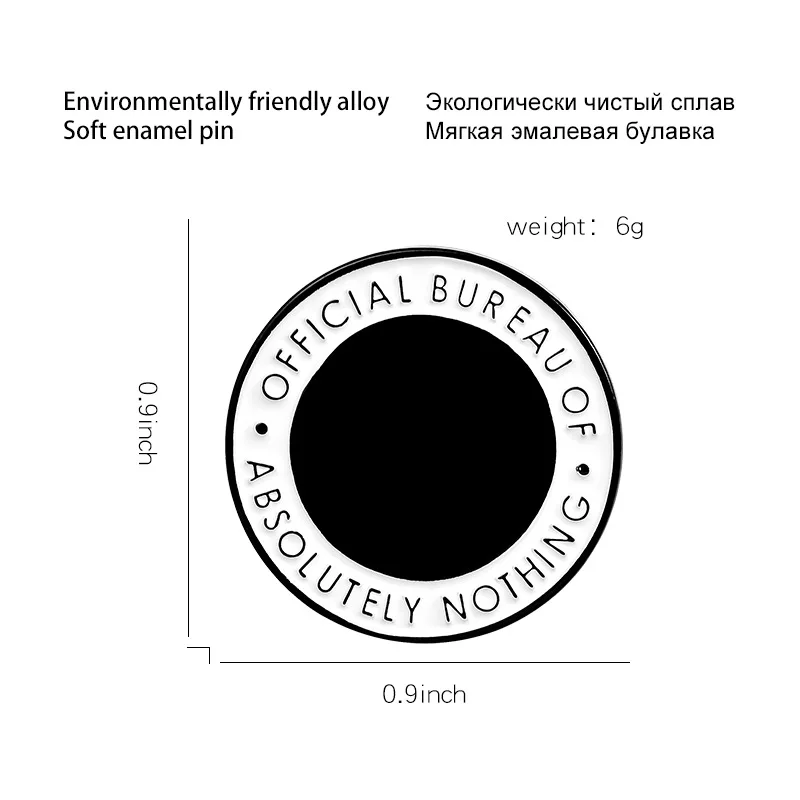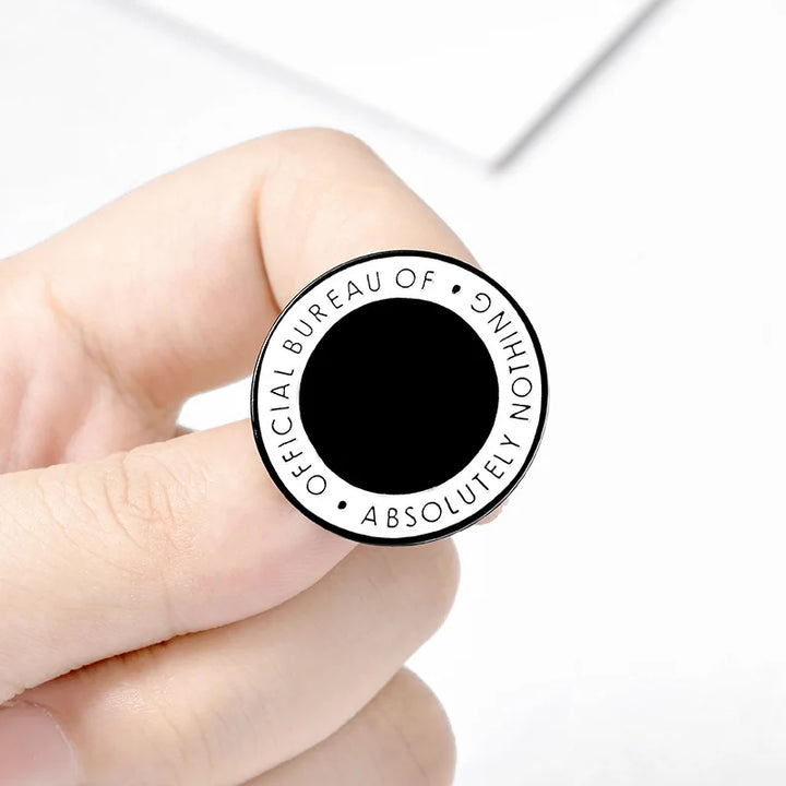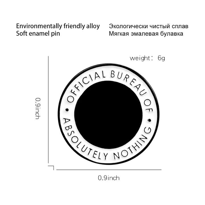 Round Enamel Pins Custom Black White Brooches Lapel Shirt Bag Official Bureau of Absolutely Nothing Badge Fashion Jewelry Gift