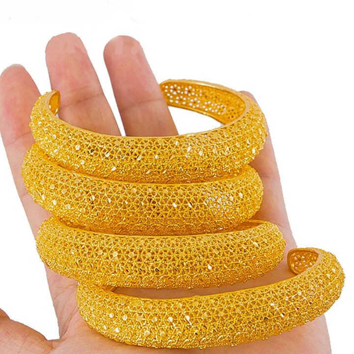 Saudi Arabia Jewelry Dubai Bangles for Women 4pcs/Lot Indian Gold Plated Bracelets Ethiopian Wedding Bridal Jewellery Gifts