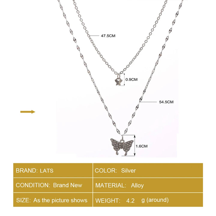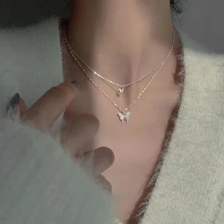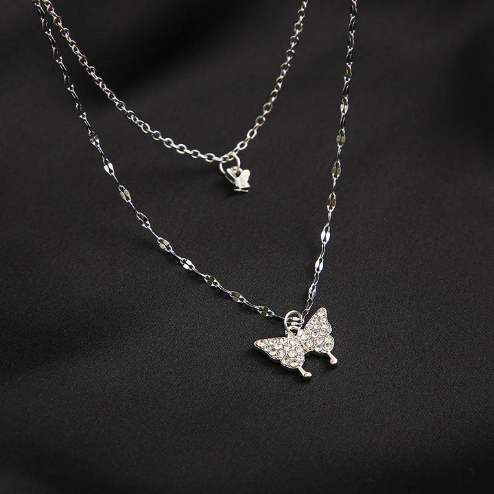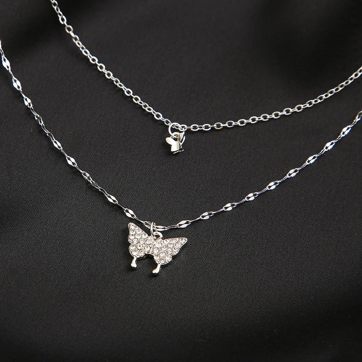 Shiny Butterfly Necklace Crystal Exquisite Double Layer Pendant Clavicle Chain Necklace For Women Wedding Party Jewelry Gifts