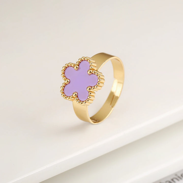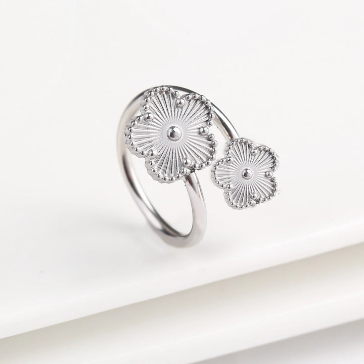 Name:Simple Adjustable Stainless Steel Five Leaf Flower Open Ring Fashion for Woman Party Wedding Trend Jewelry Accessories Clover