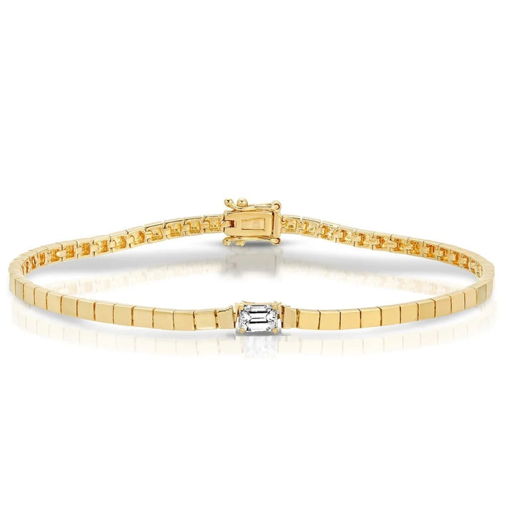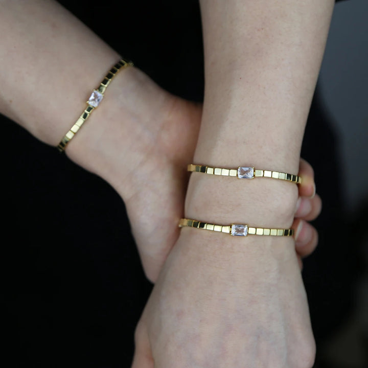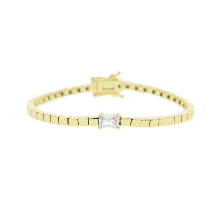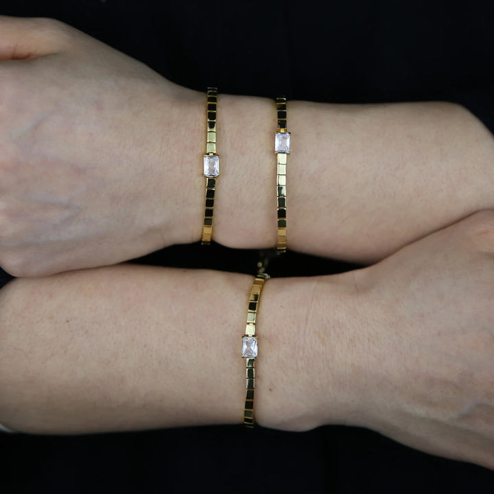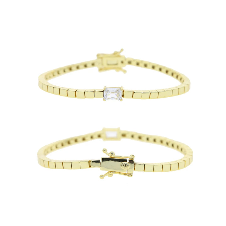 Simple Fashion Women Girl Jewelry Single Clear Rectangle Cubic Zirconia Gold Color Square Bead Tennis Chain Bracelet
