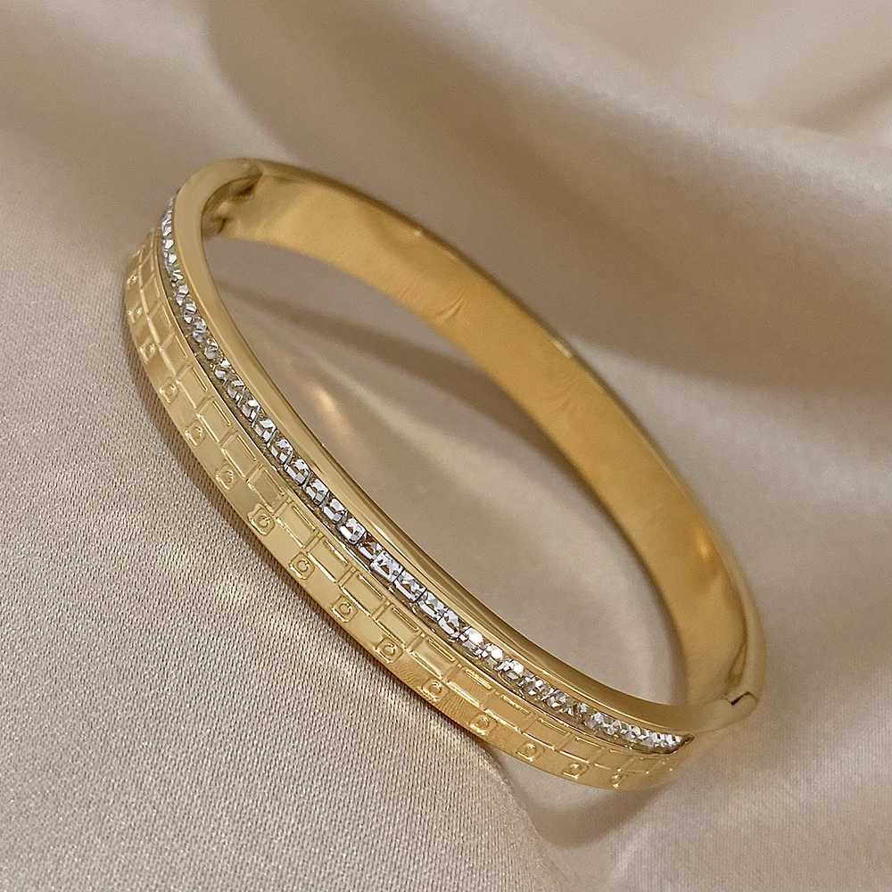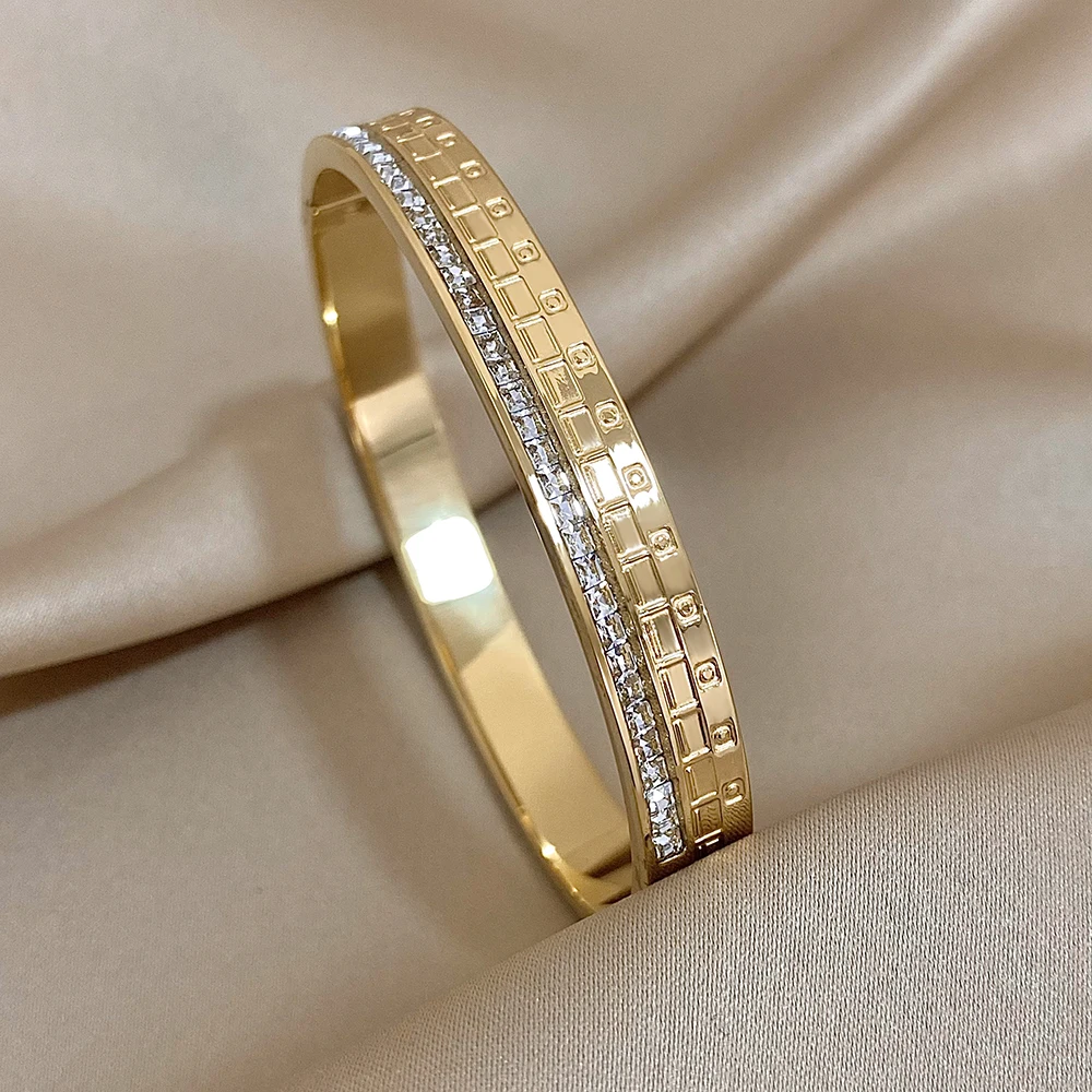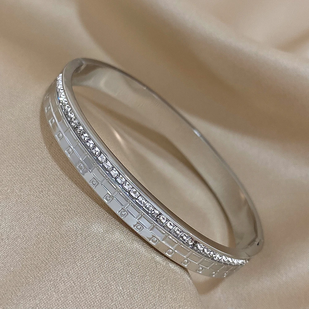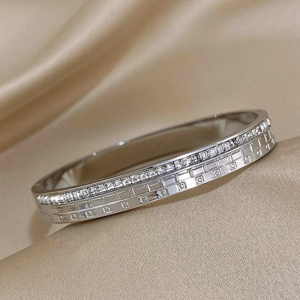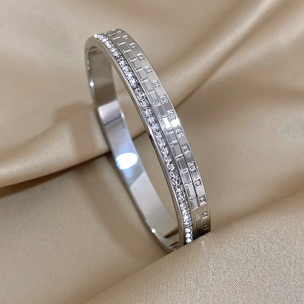 Simple White Zircon Stainless Steel Bangles Bracelets for Women Cuff Wristband Waterproof Wedding Jewelry Gifts Accessories