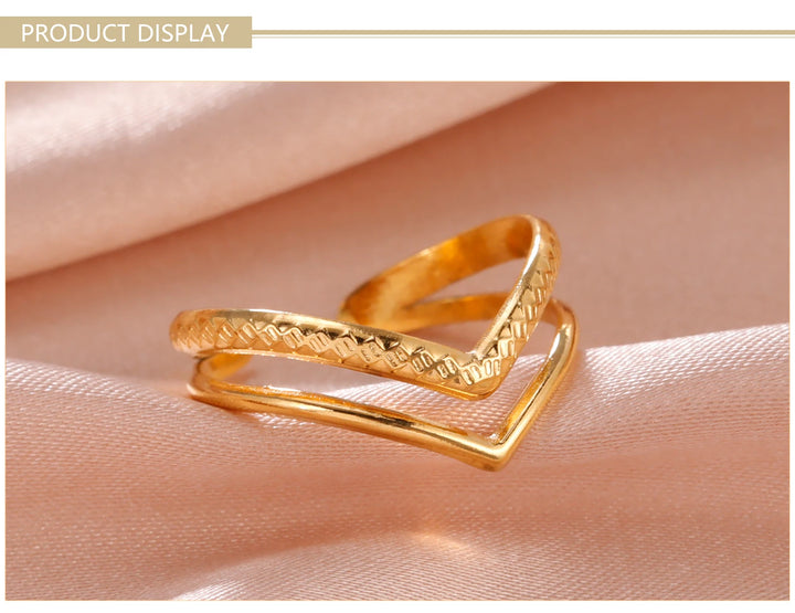 Skyrim Minimalist V Shape Double Layers Rings Women Stainless Steel Open Finger Ring Band 2025 Kpop Jewelry Gift Wholesale