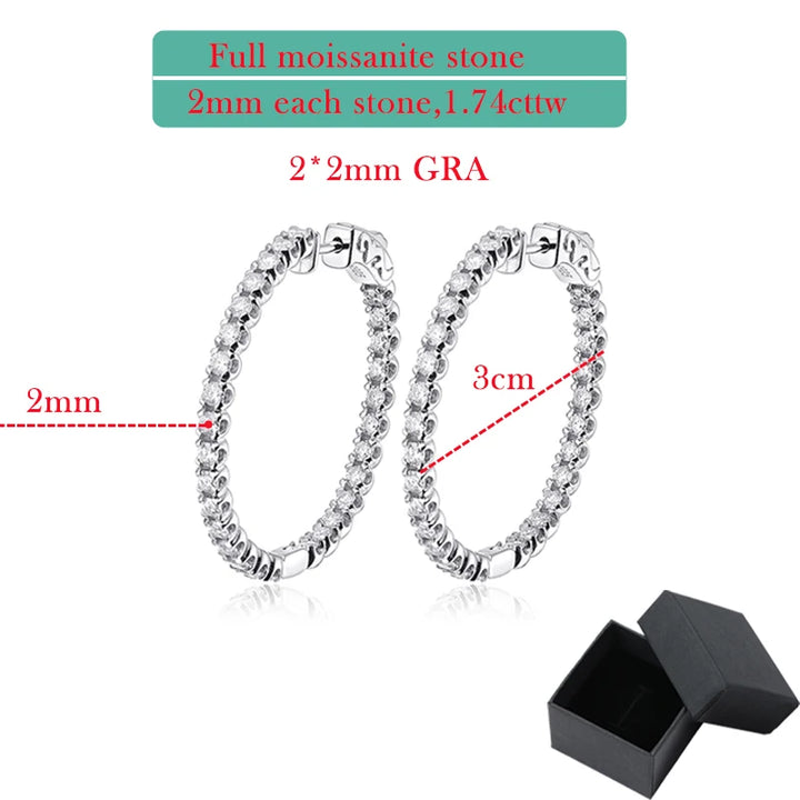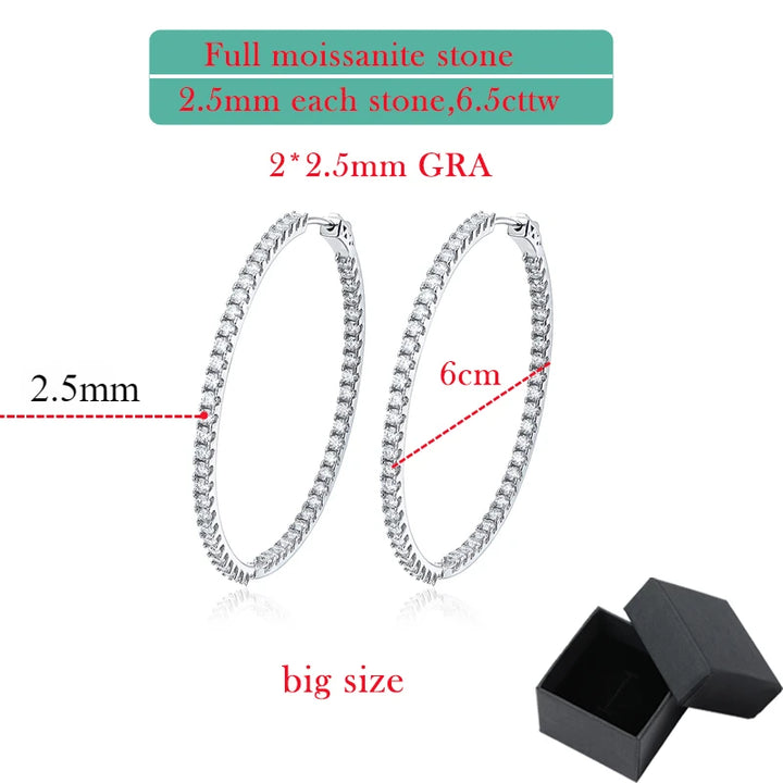 Smyoue 18K Plated 1.74-6.5cttw All Moissanite Hoop Earrings for Women Lab Diamond Jewelry 100% 925 Sterling Silver Earring GRA