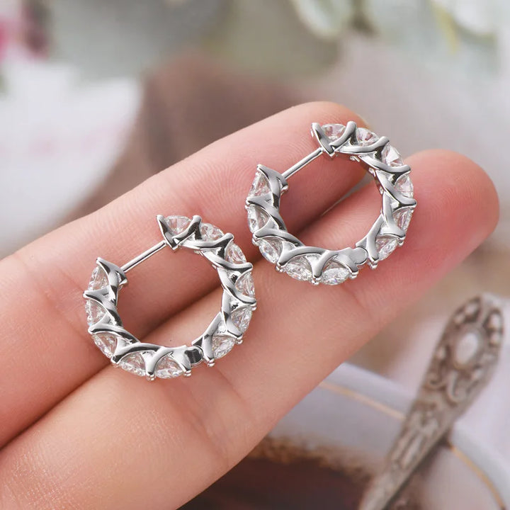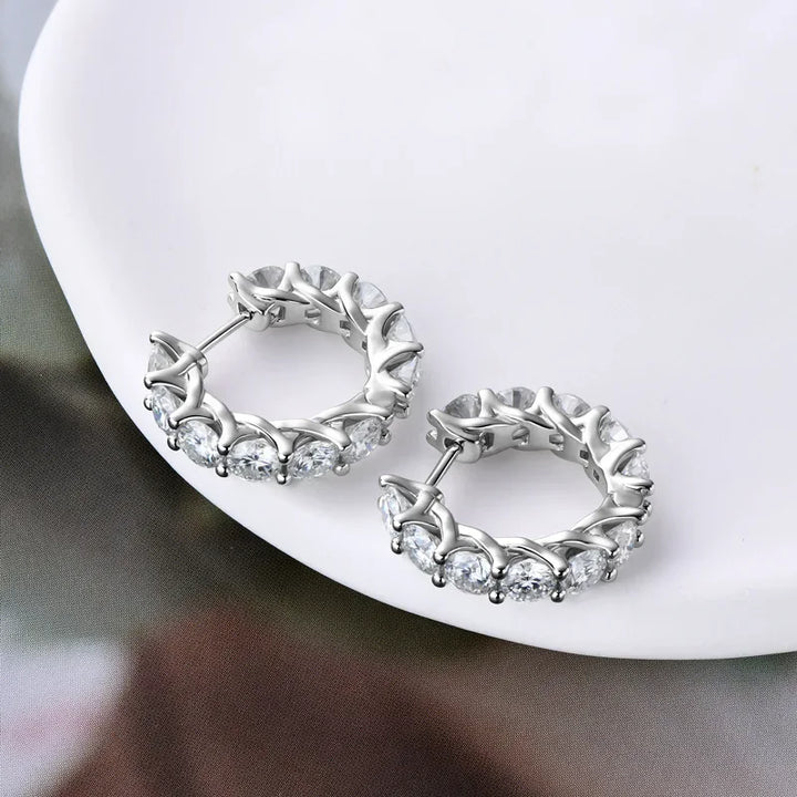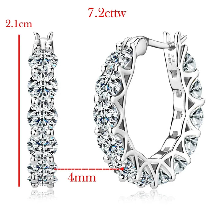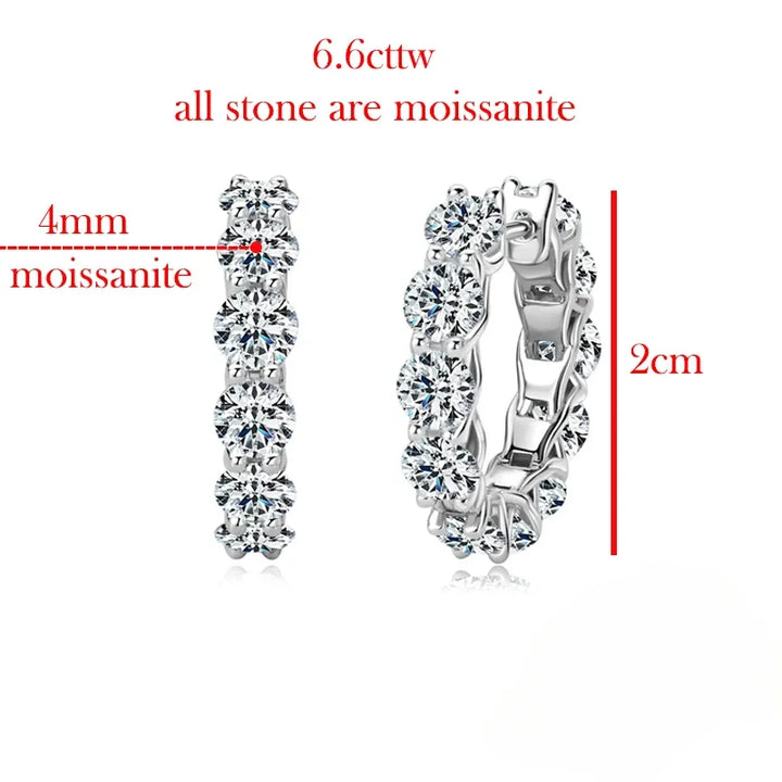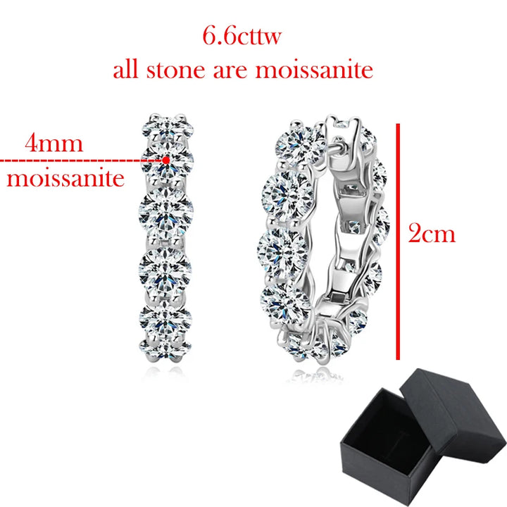 Smyoue 6.6/7.2cttw 4mm Sparkling Full Moissanite Hoop Earrings for Women Flawless Lab Diamond Sterling Silver 925 Jewelry GRA