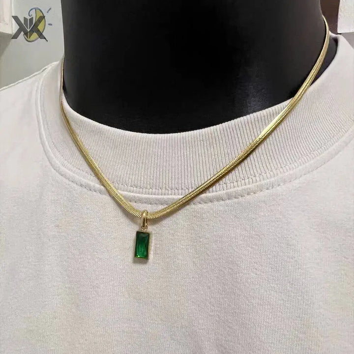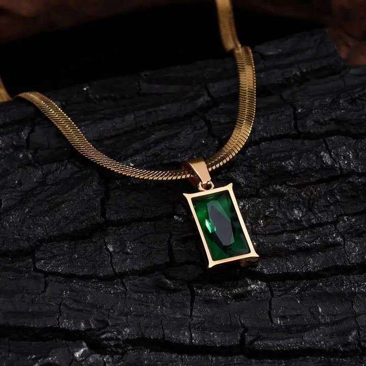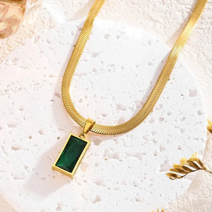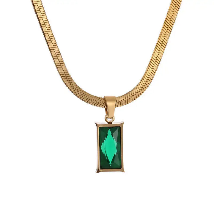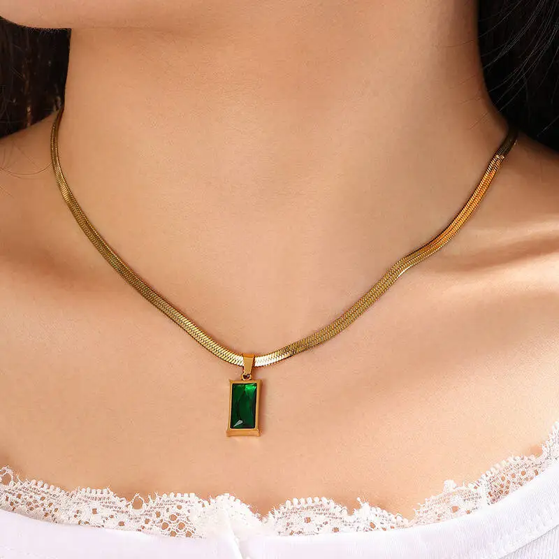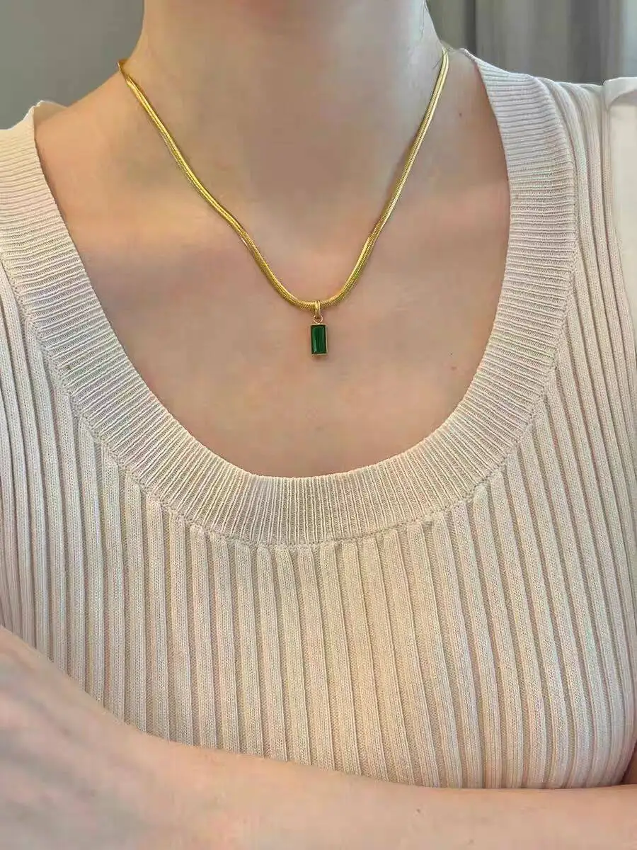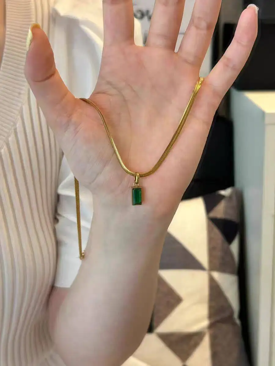snake Bone Chain Necklace For Women Necklace Temperament Design Necklace With Emerald Zircon Pendant Jewelry Stylish Necklace