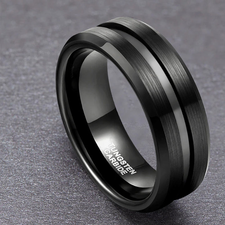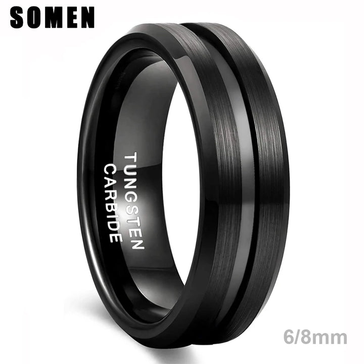 Somen Men Ring Black Tungsten Carbide Ring 6mm 8mm Groove Brushed Wedding Band Male Engagement Rings Anel Masculino Comfort Fit