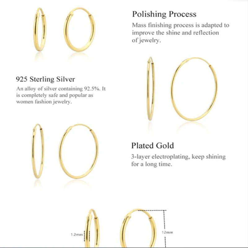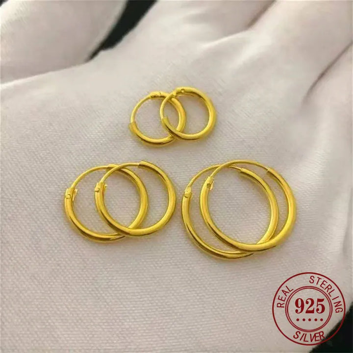 Somilia-18K Gold Plated Small Hoop Earrings for Women and Men, 925 Sterling Silver Jewelry, New Fashiona ble Ear-rings, 10-20mm