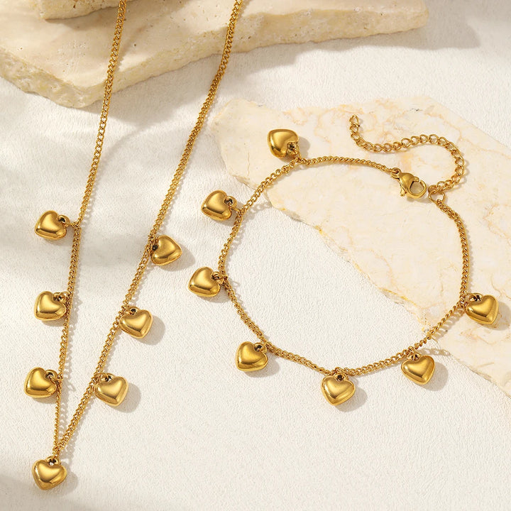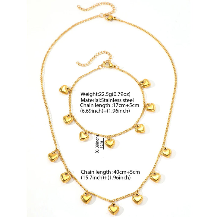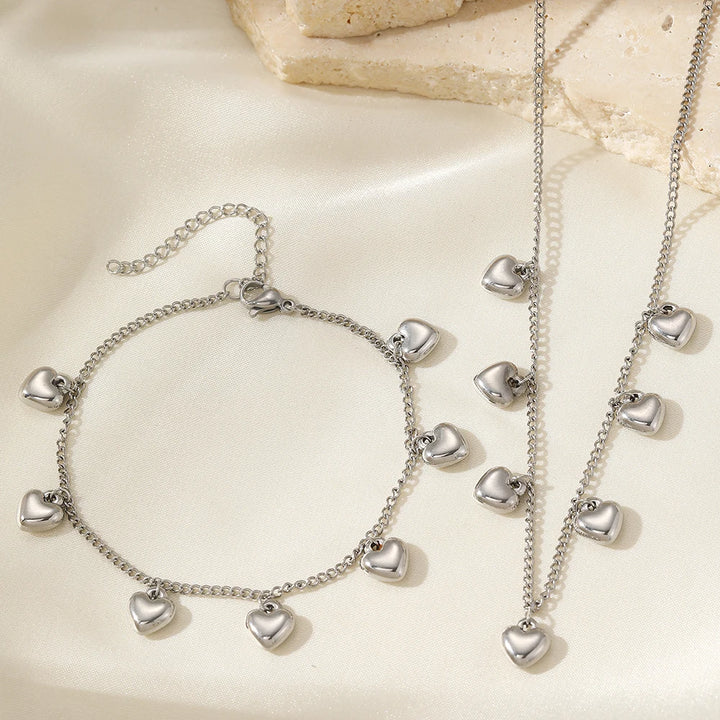 Stainless Steel Jewelry Set Fashionable Delicate Cubic Love Shaped Pendant Bracelet Necklace Two Sets For Women Jewelry Gifts