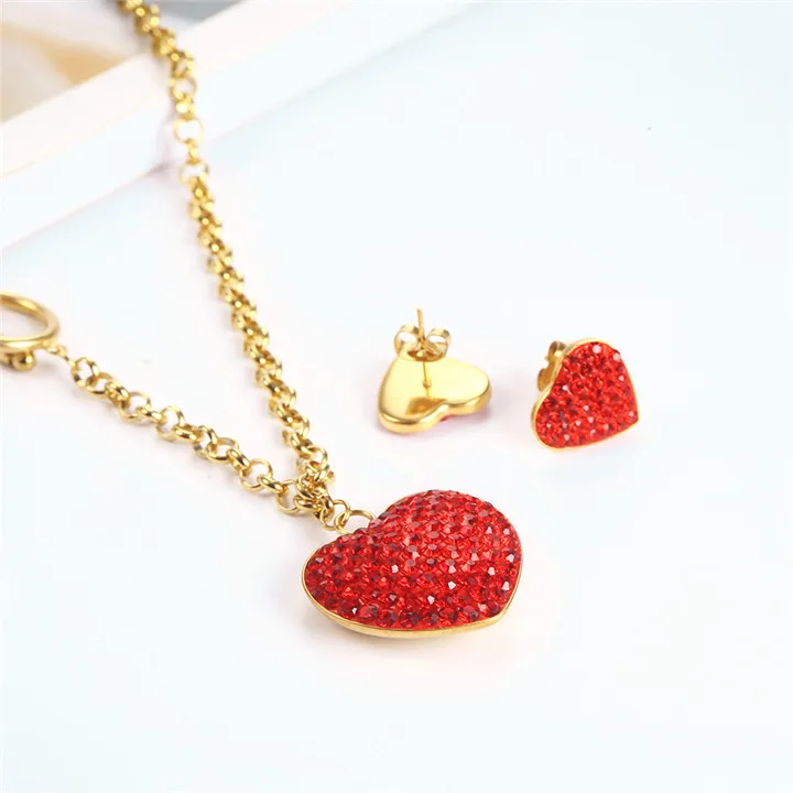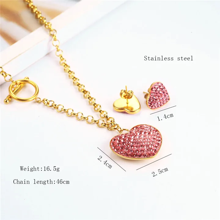 Stainless Steel Jewelry Woman Fashion Jewelry Sets Heart Necklace Earrings Set Jewellery Accessories