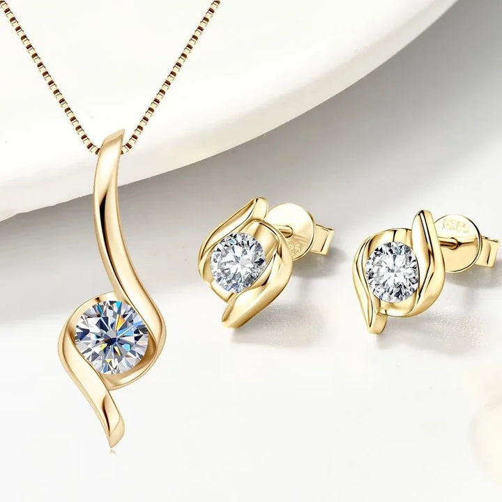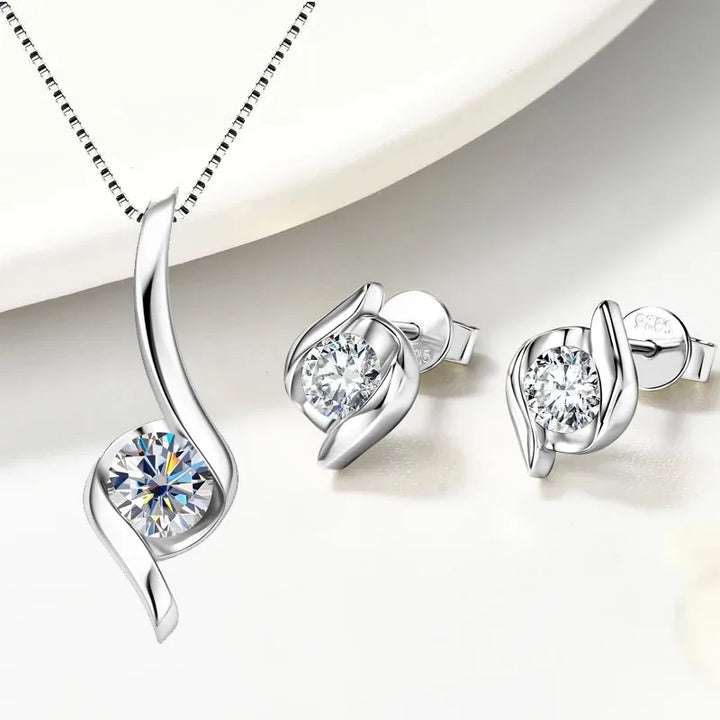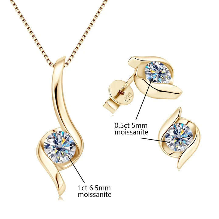 Sterling Silver 925 Real Moissanite Jewelry Set for Women 2.0ctw D Color Lab Diamond Stud Earrings Pendant Necklace Sets Gift