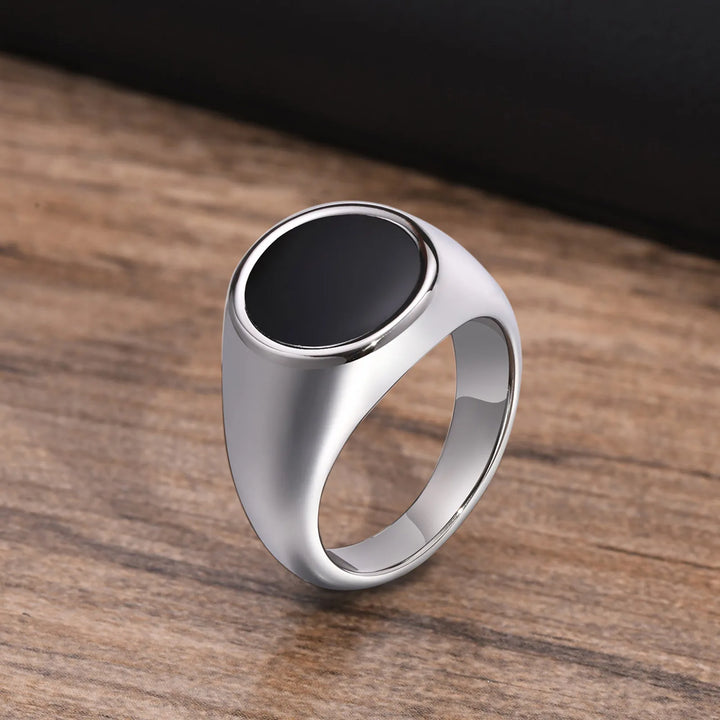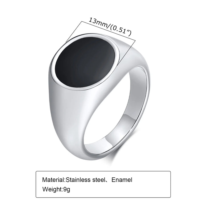 Stylish 13mm Signet Rings for Men, Waterproof Stainless Steel Finger Band with Black Enamel Male Rock Punk Ring Jewelry