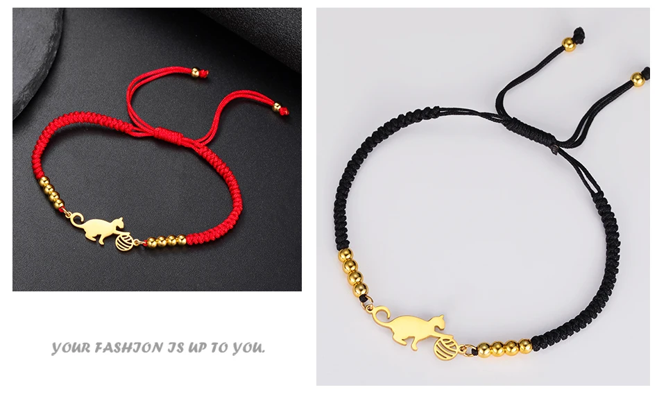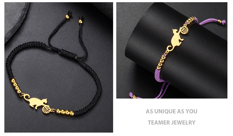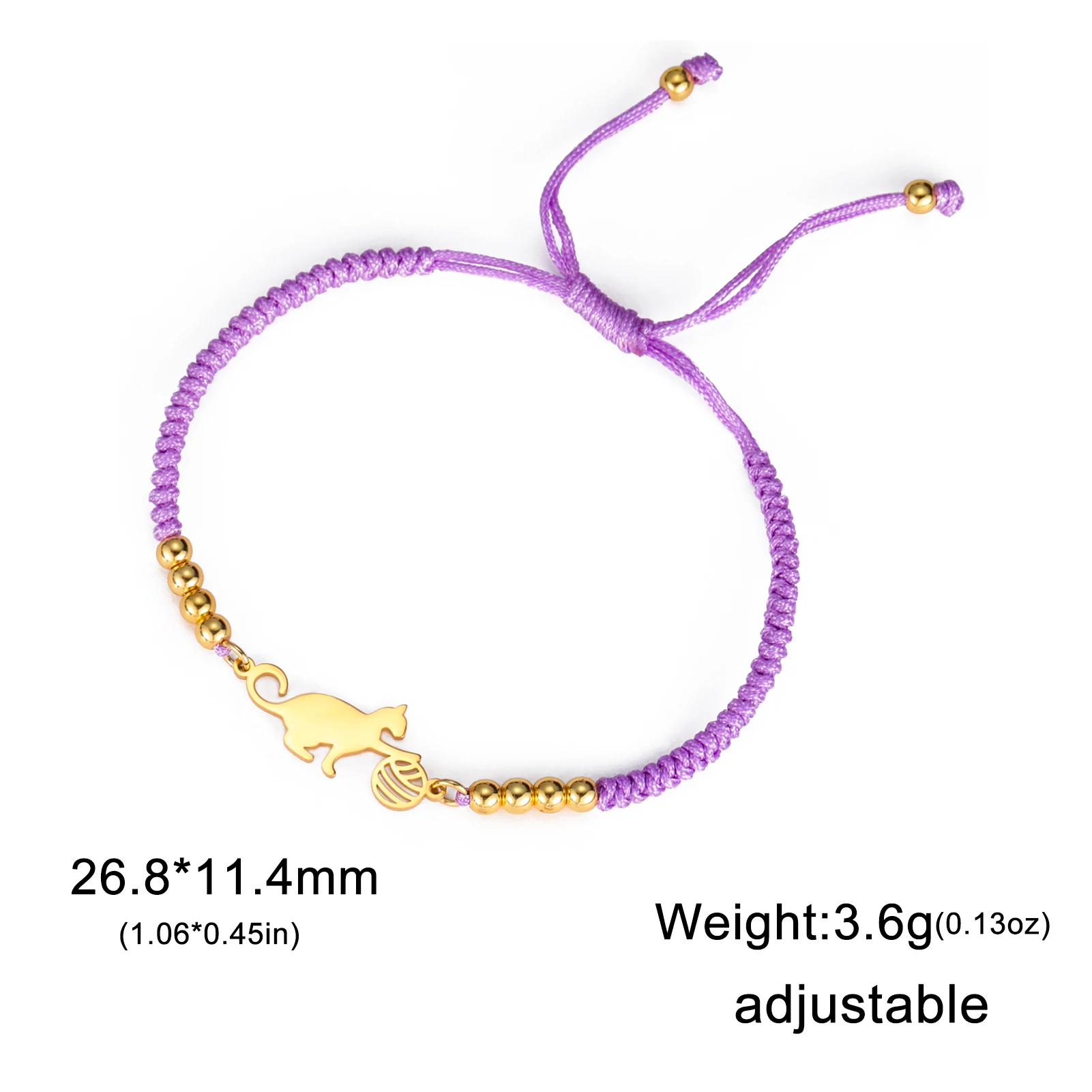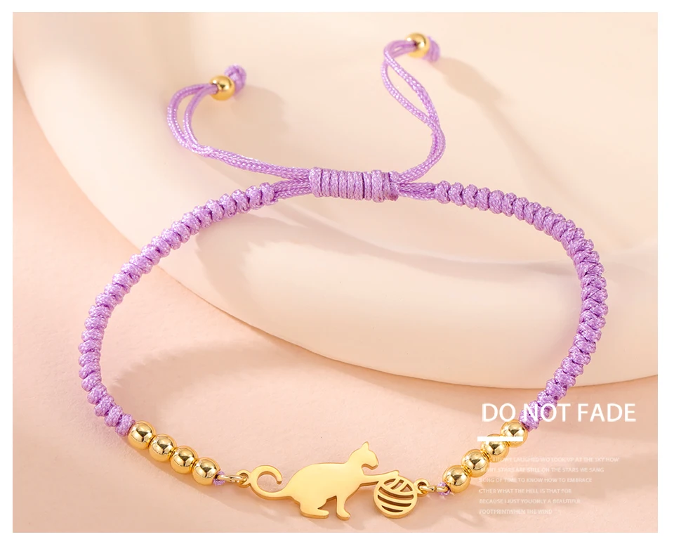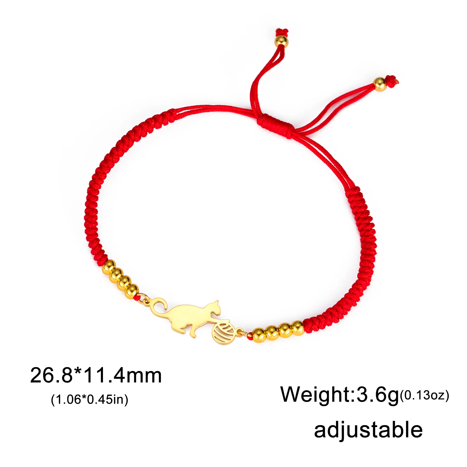 Teamer Cat &Ball Stainless Steel Charm Bracelet For Women Girls Gold Color Bead Adjustable Rope Chain Cute Jewelry 2025 New