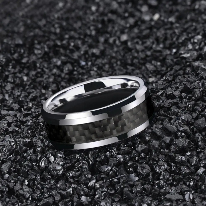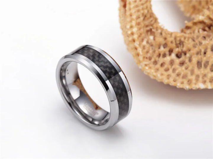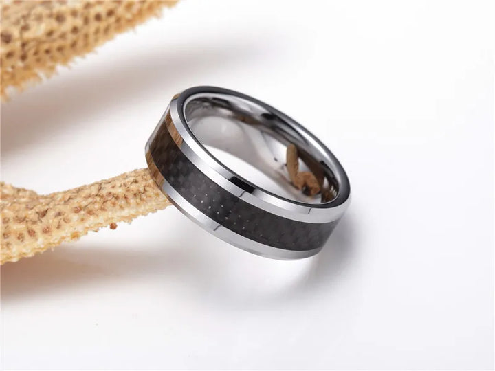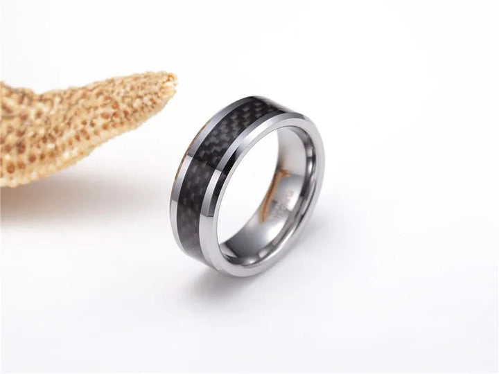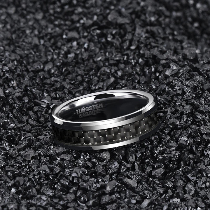 Tigrade 6/8mm Black Carbon Fiber Men's Ring Tungsten Carbide Engagement Ring Wedding Band Men Women Design anel mascul