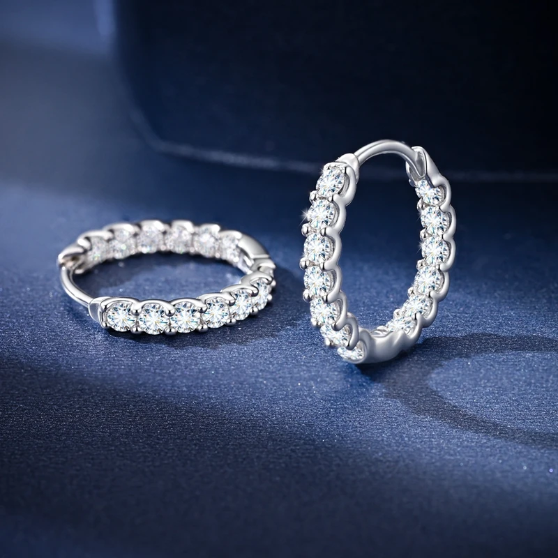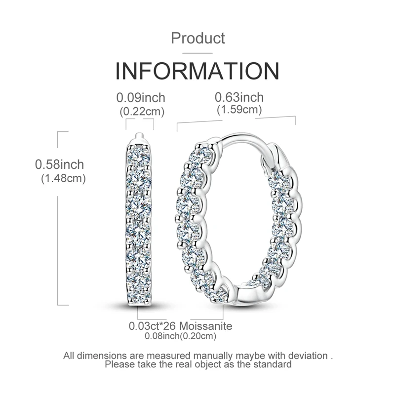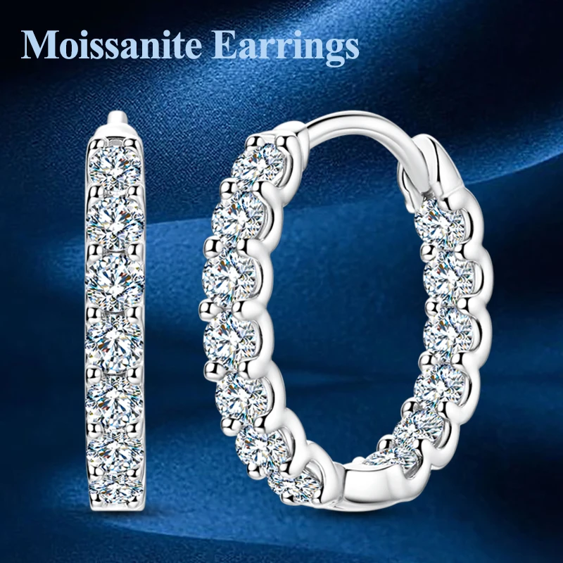 Total 0.78ct Moissanite Hoops Earrings For Women 100% Real 925 Sterling Silve Classic Sparkling Earrings Wedding Party Jewelry