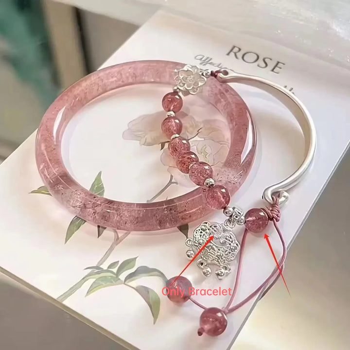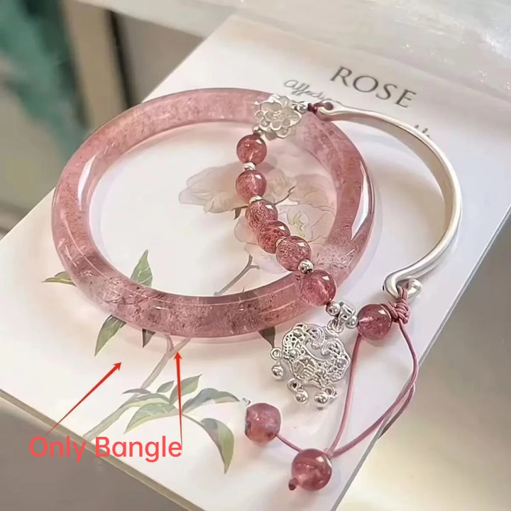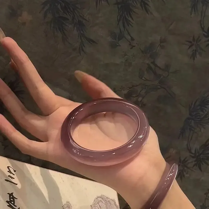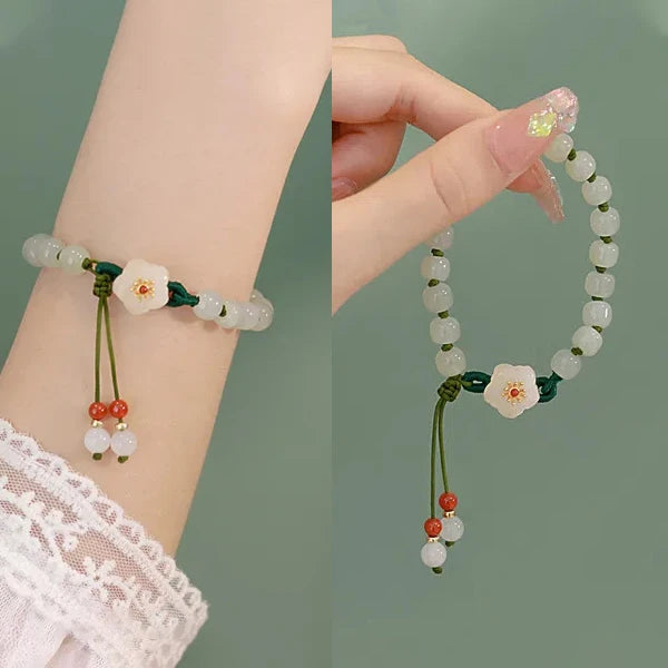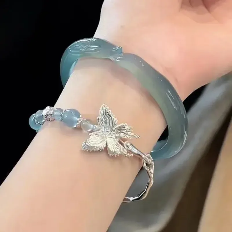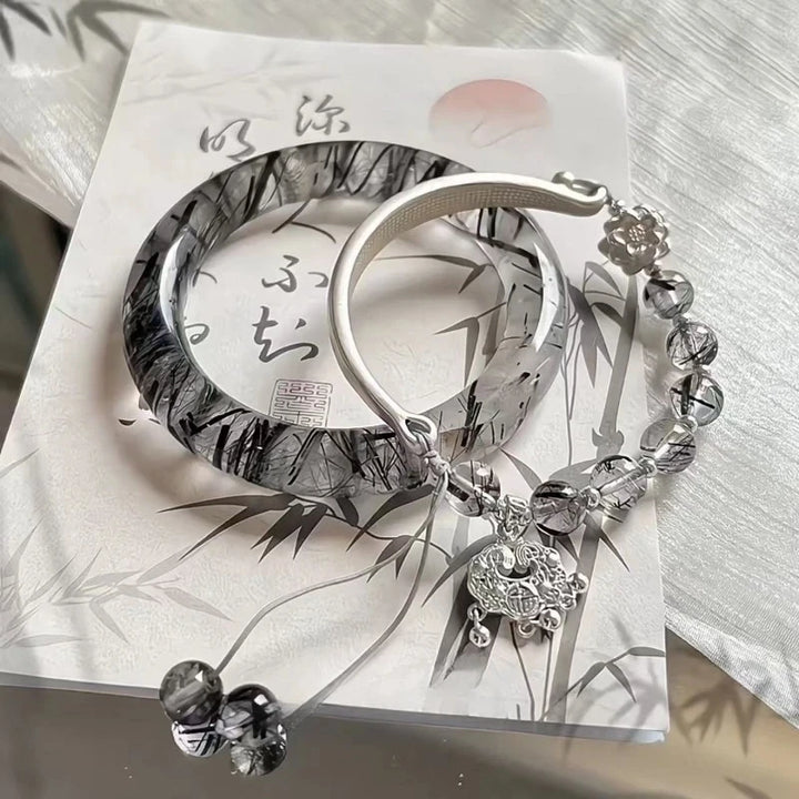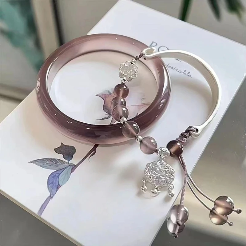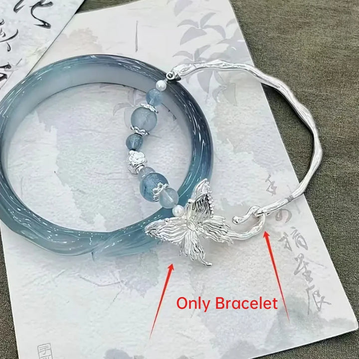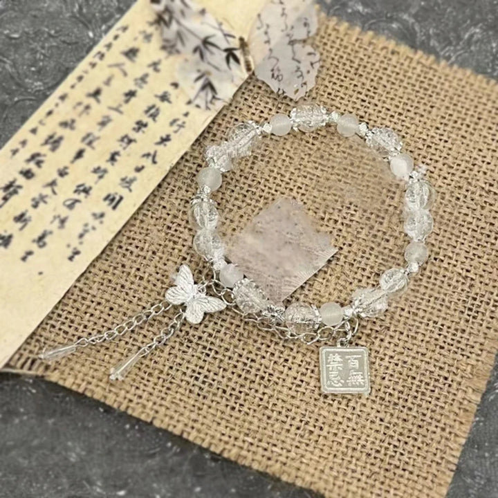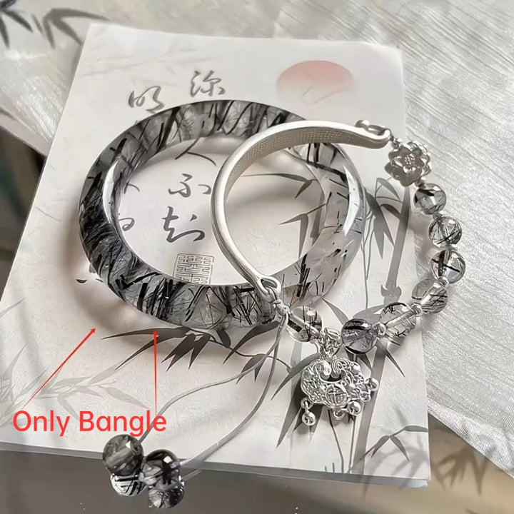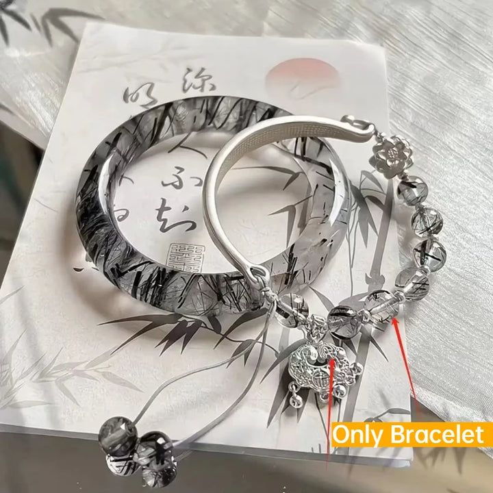 Translucent Resin Bangle for Women Chinese Style Tassel Bells Bracelet Crystal Beads Chain Bracelet Silver Color Alloy Jewelry