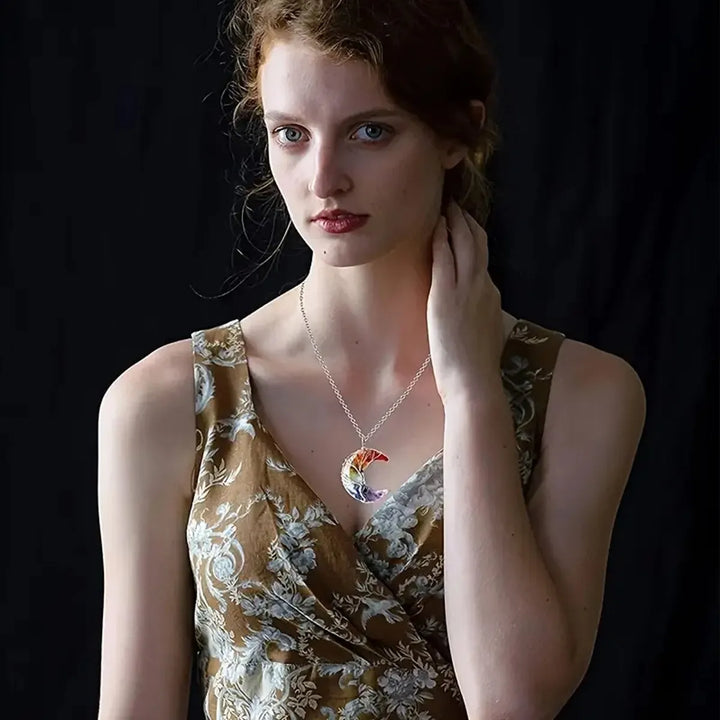 • Wire Wrapped Crescent Moon Stone Pendant :The crescent moon stone pendant is wrapped in wire, giving it a unique and stylish look.