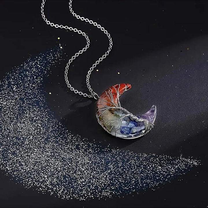 Tree of Life Necklace Wire Wrapped Crescent Moon Stone Pendant Necklaces 7 Chakra Healing Crystal Necklace For Stress Reduction