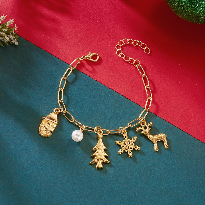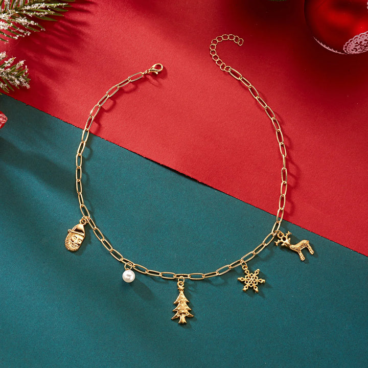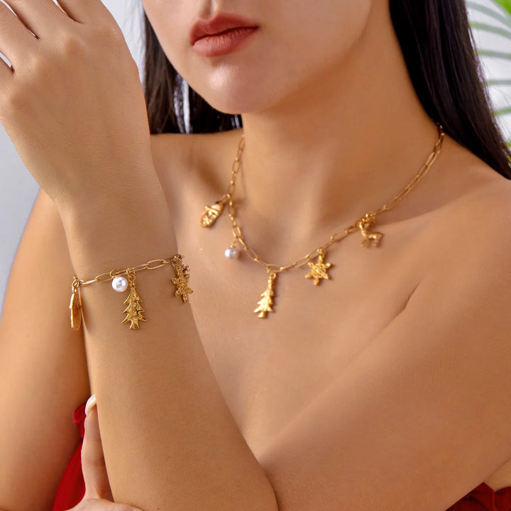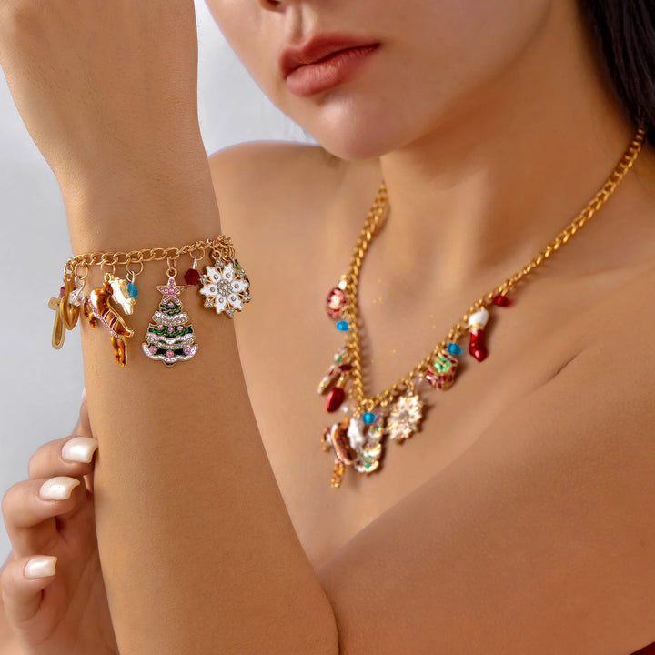 Trendy Christmas Jewelry Set for Women Exquisite Crystal Zircon Xmas Tree Snowflake Elk Crutch Metal Chain Choker Bracelet Gifts