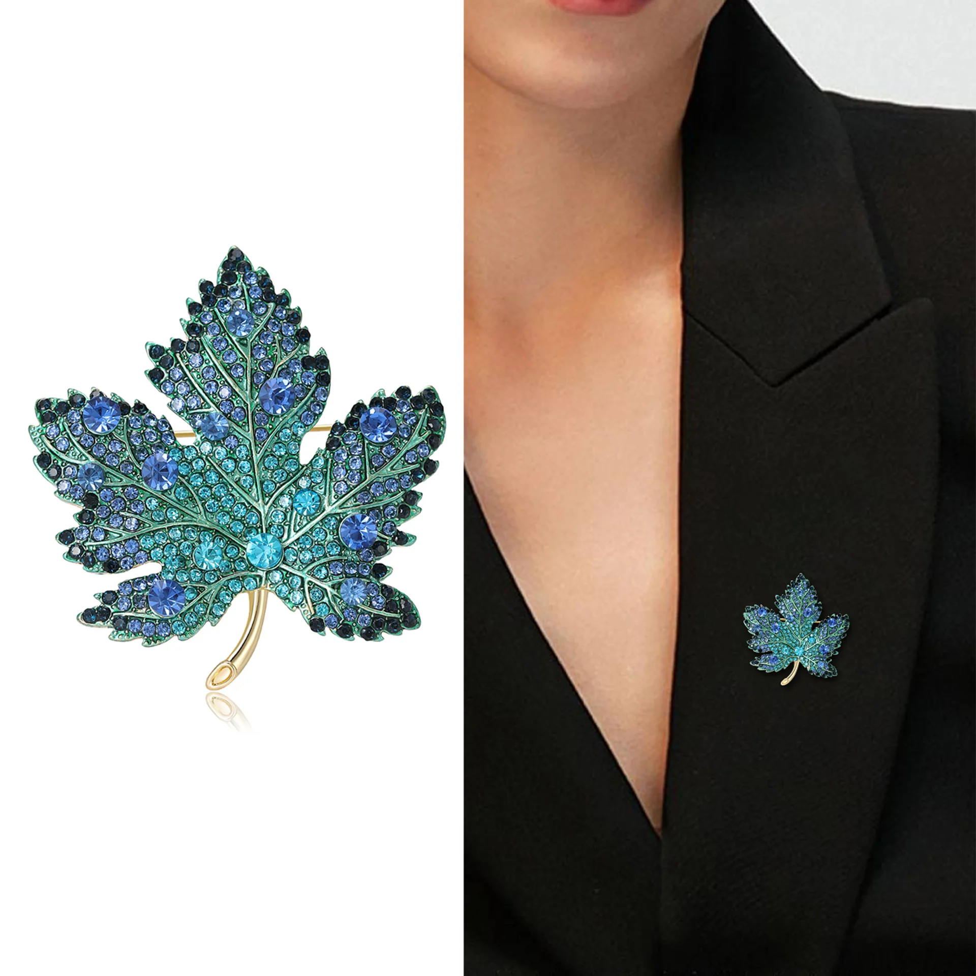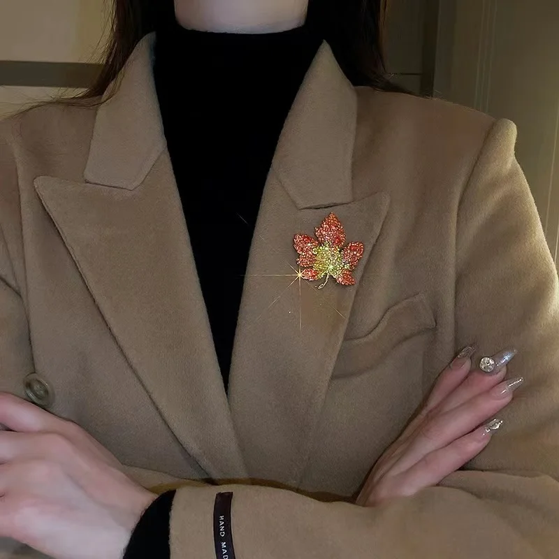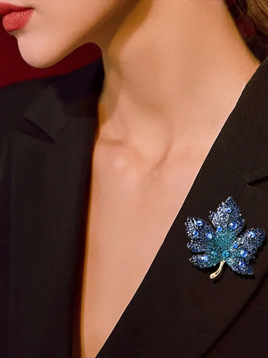This brooch features a trendy maple leaf design, perfect for adding a touch of elegance to any outfit.