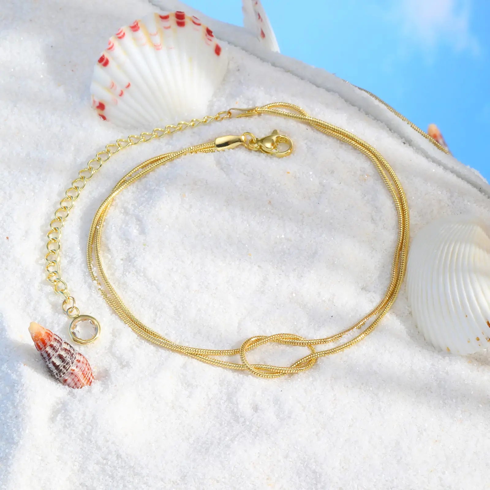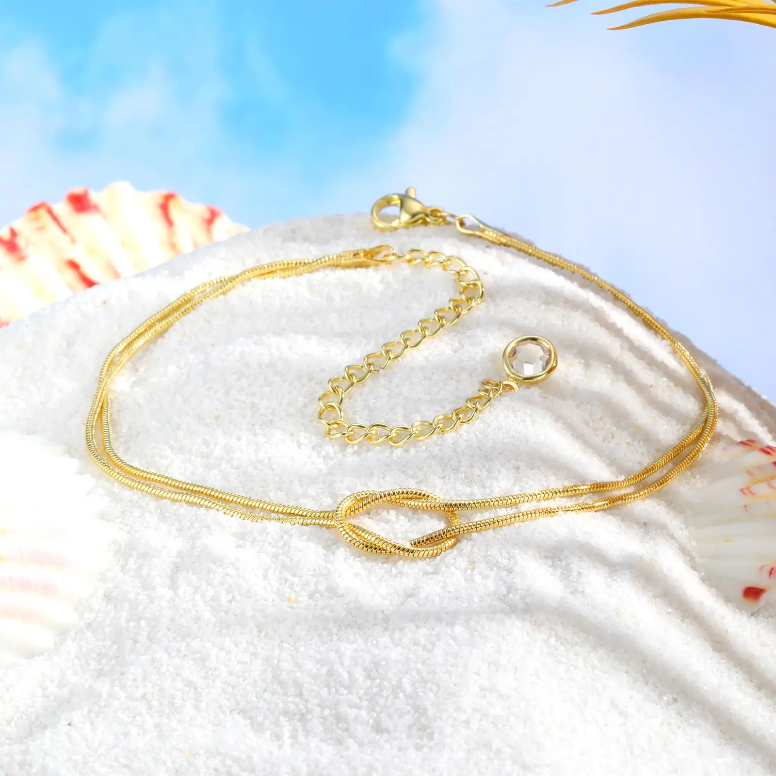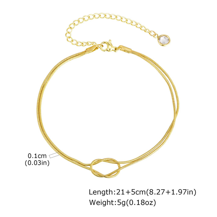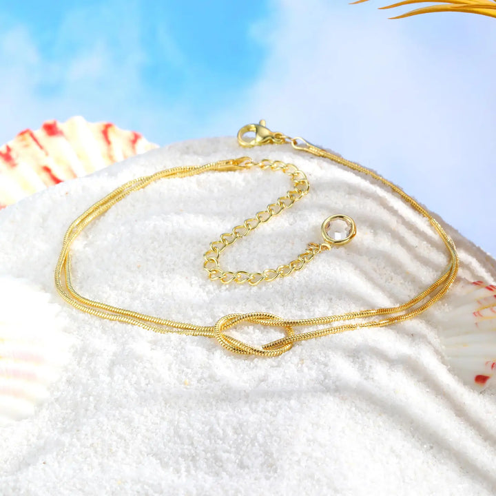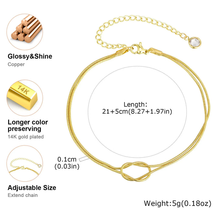 Twist Knotted Double Layer Women's Anklet, Copper 14k Gold Plated Minimalist Ankle Bracelets, Geometric Foot Jewelry Accessories