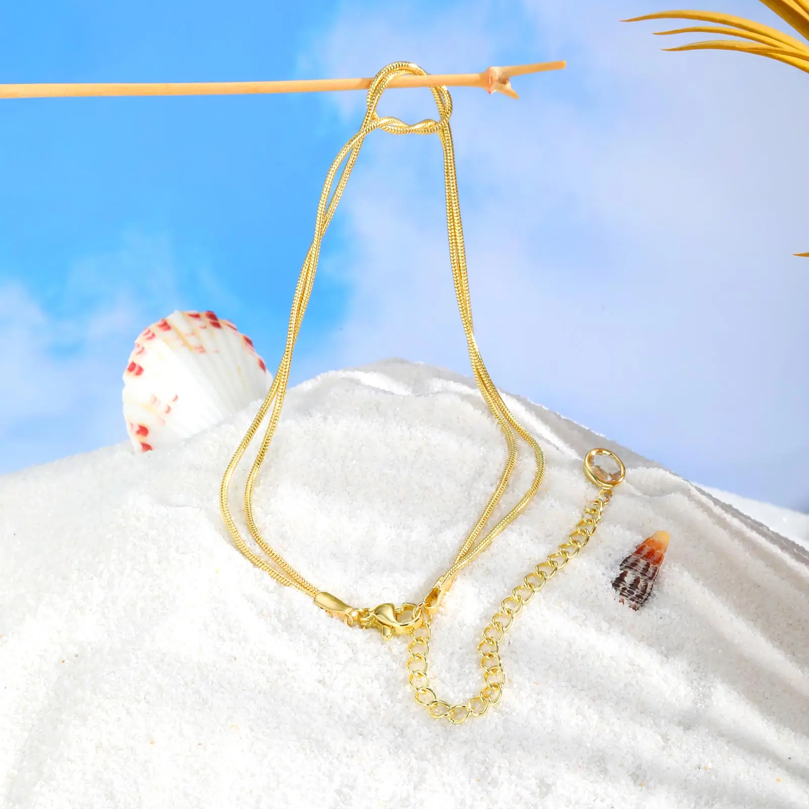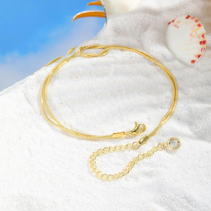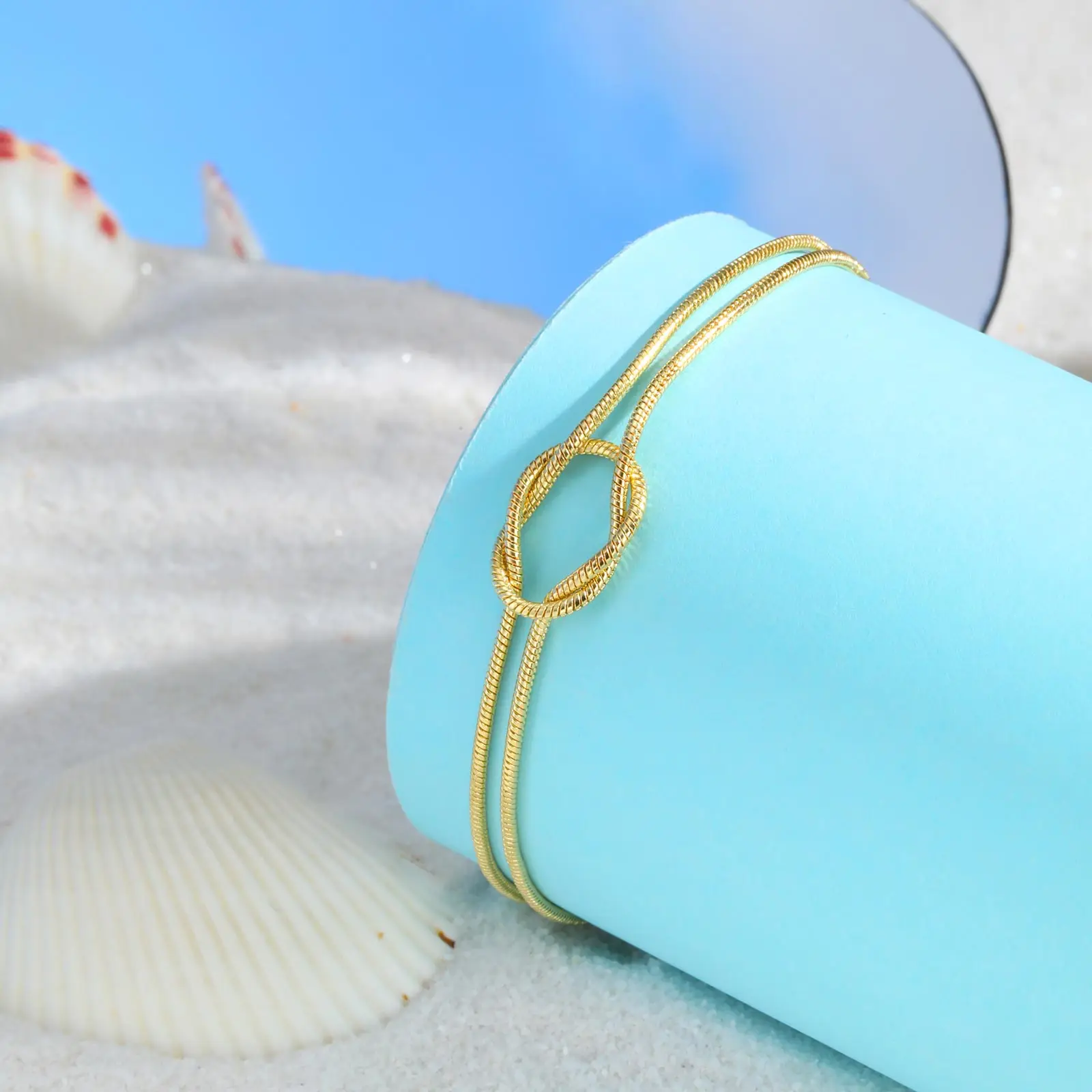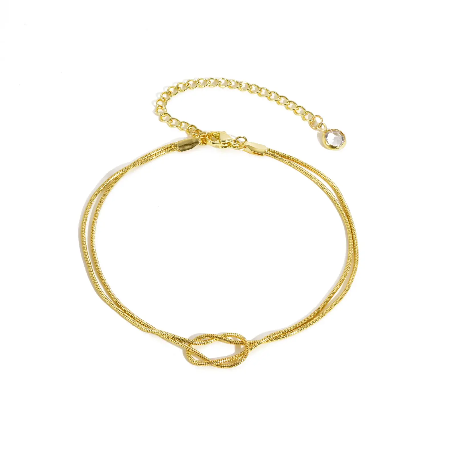 Twist Knotted Double Layer Women's Anklet, Copper 14k Gold Plated Minimalist Ankle Bracelets, Geometric Foot Jewelry Accessories