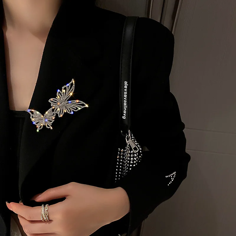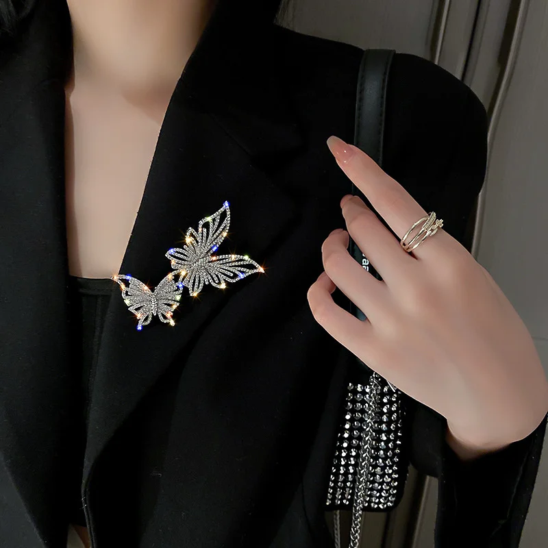 Two Butterfly Rhinestone Brooch for Women Geometric Crystal Statement Jewelry Wedding Bride Dainty Accessories
