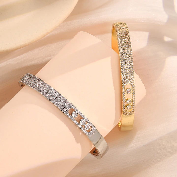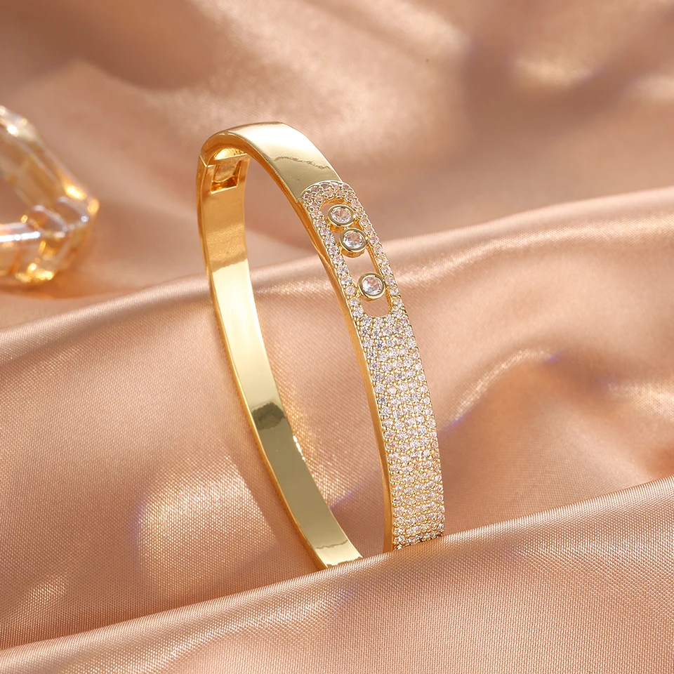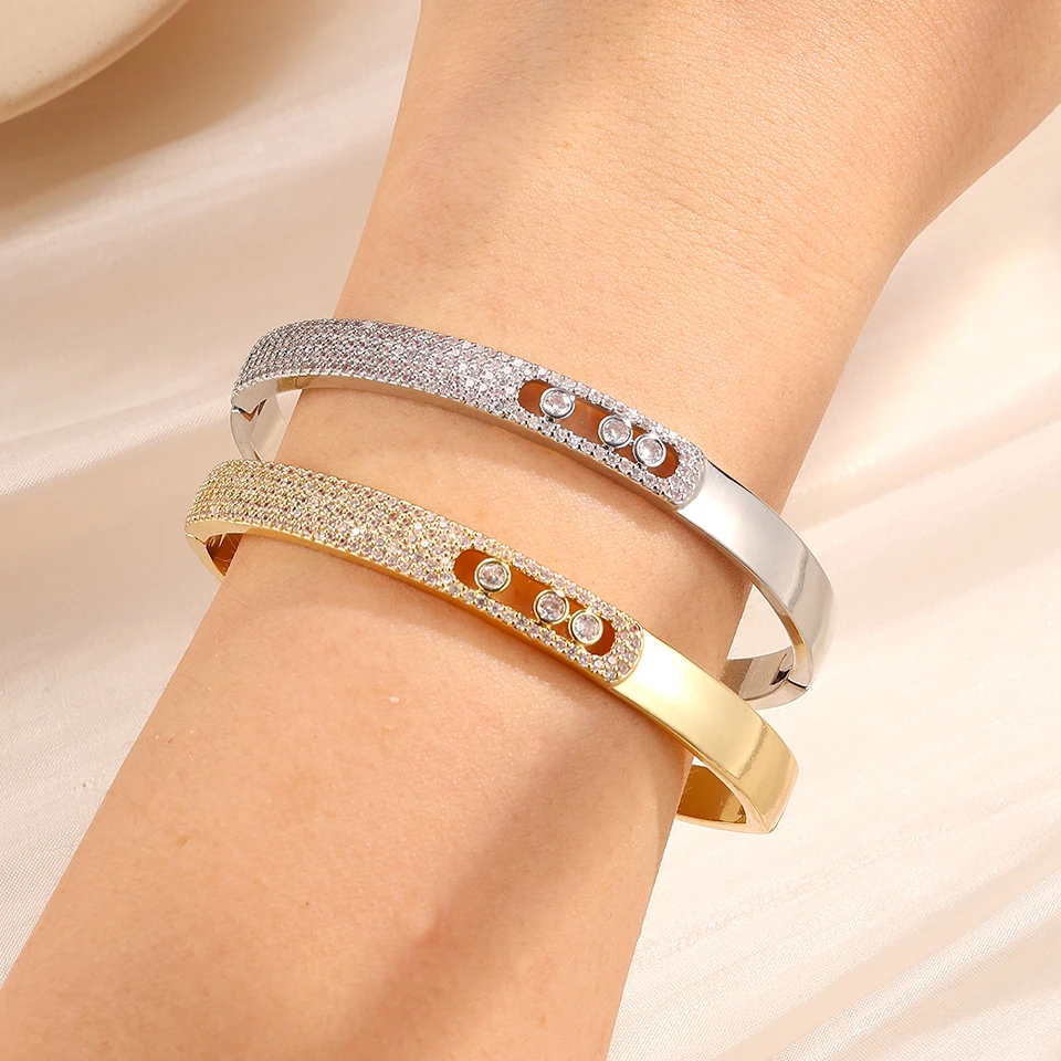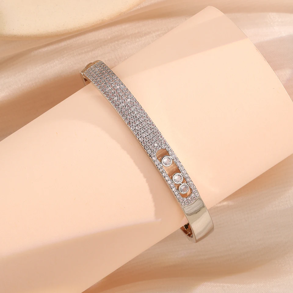 UILZ Paper Clip 1: 1 Copy Gorgeous Micro-intact Zircon Round CZ Bracelet For Women Luxury Shiny Crystal Bangles Jewelry Gift INS