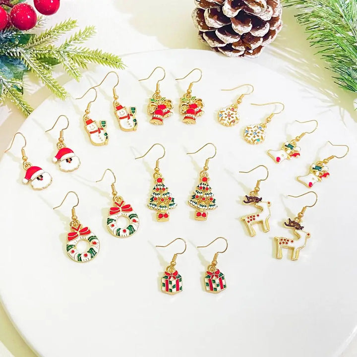 Unique Christmas Tree Christmas Jewelry Set Elk Santa Xmas Dangle Earring Snowman Cartoon Gift