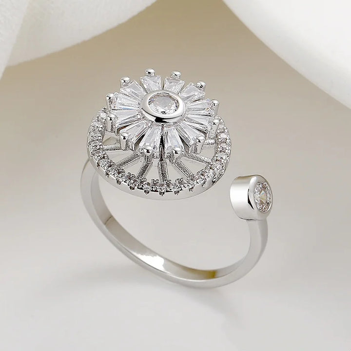 Versatile Flower Rotatable Cubic Zirconia Size Adjustable Rings For Women Gold Copper Metal Ring Party Jewelry