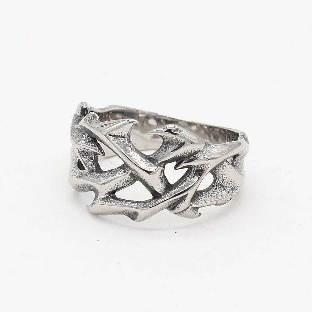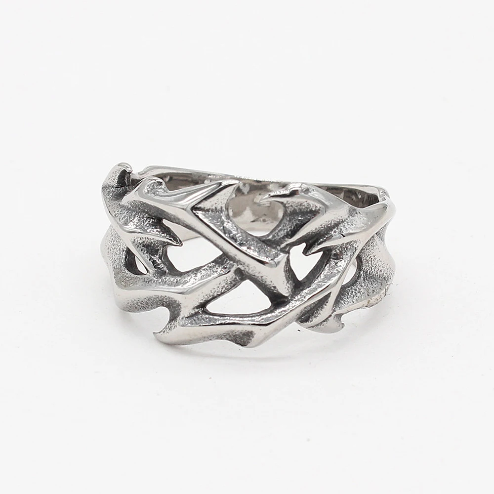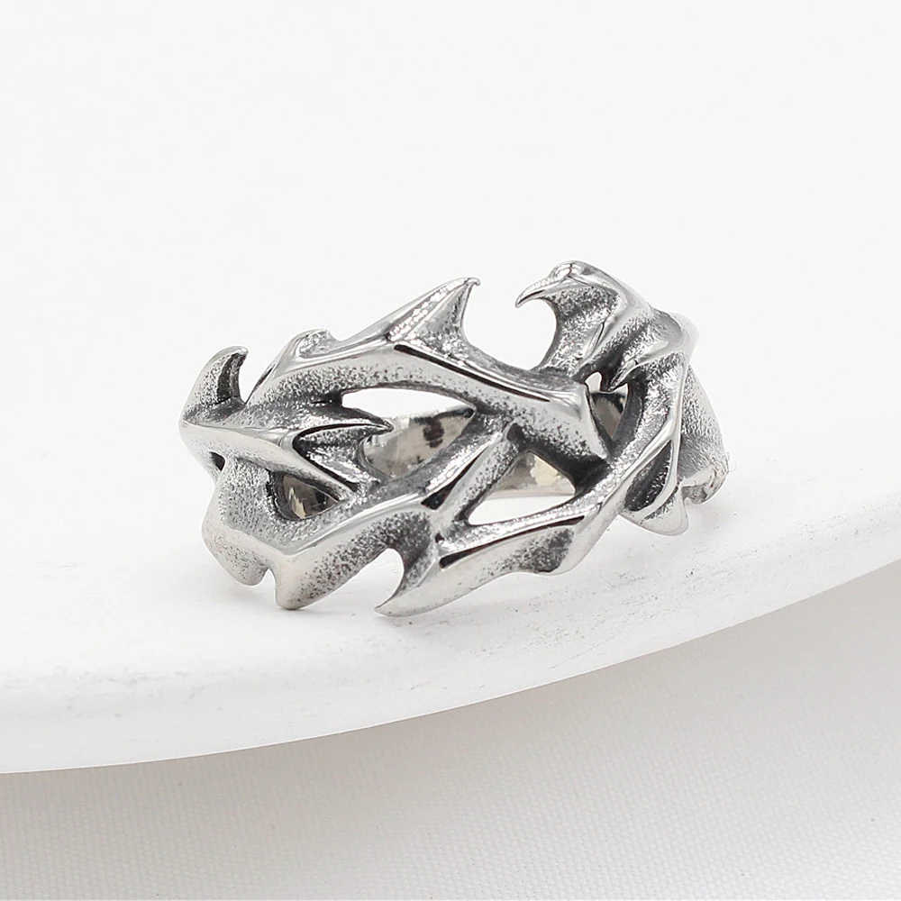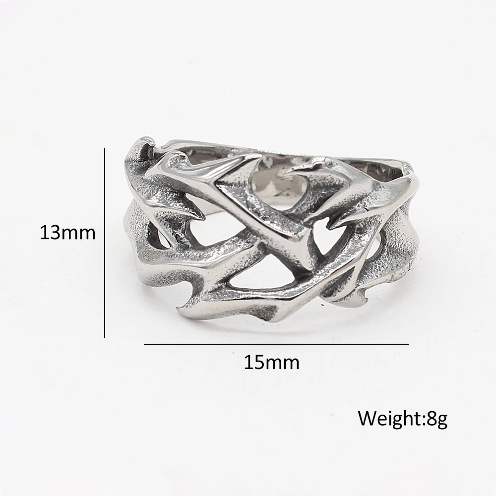 Name: Vintage Punk Stainless Steel Crown of Thorns Rings For Men Women Hollow Out Design Fashion Party Male Jewelry Gifts Dropshipping