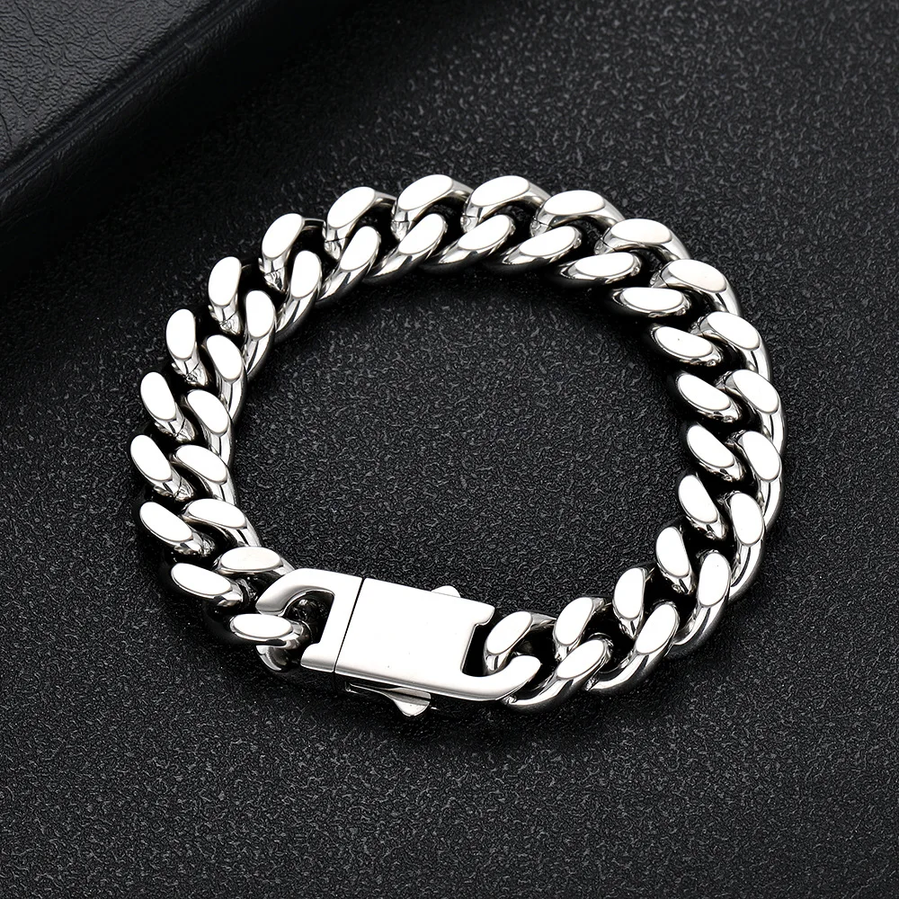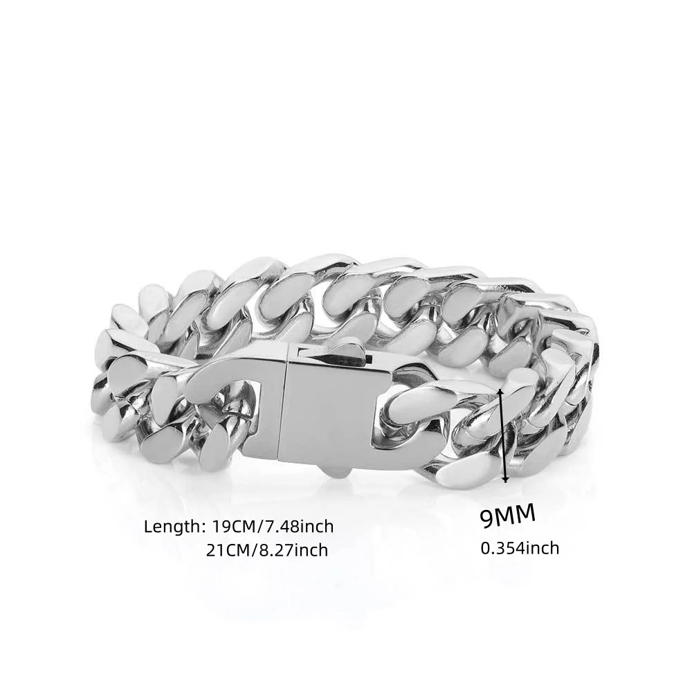 Width 9MM 316L Stainless Steel Encrypted Cuban Chain Bracelet For Men Fashion Hip Hop Party Accessories Boyfriend Gift 19/21CM