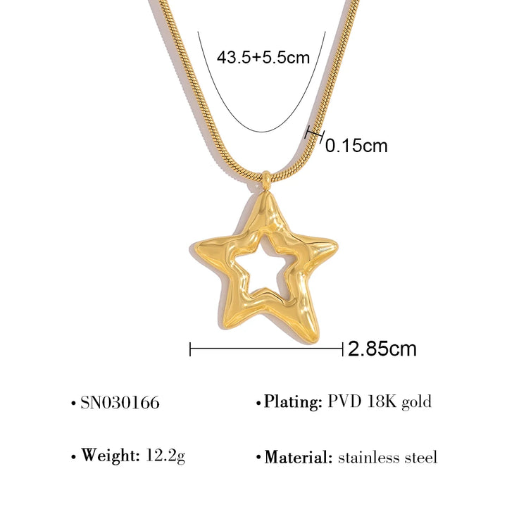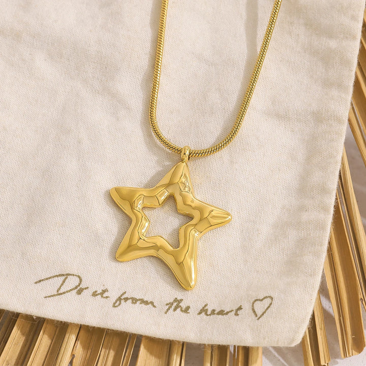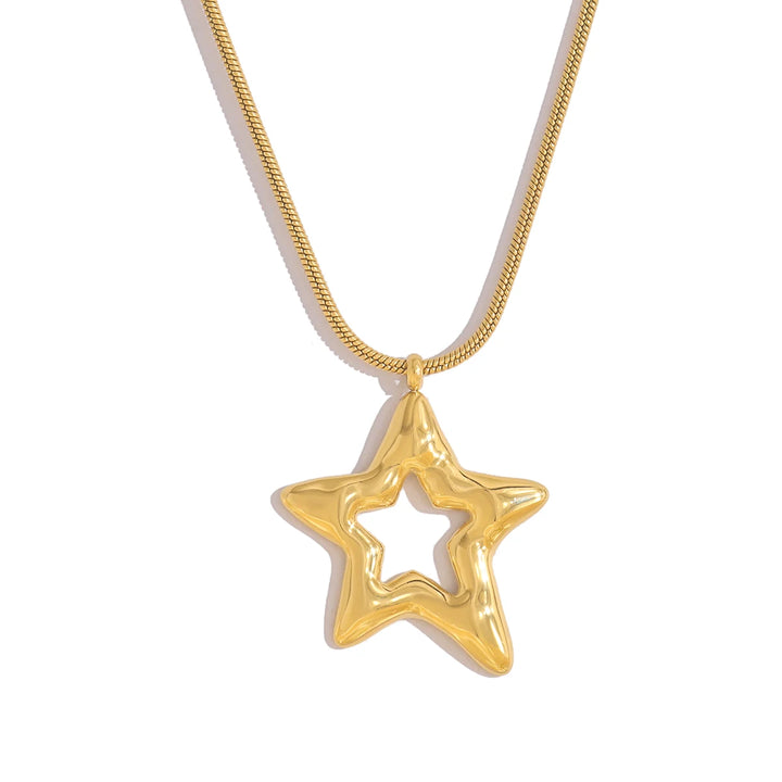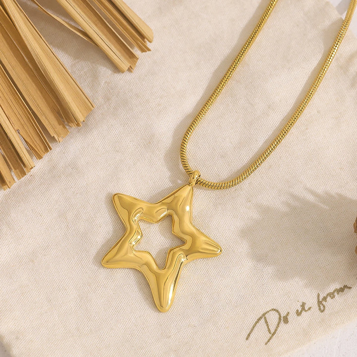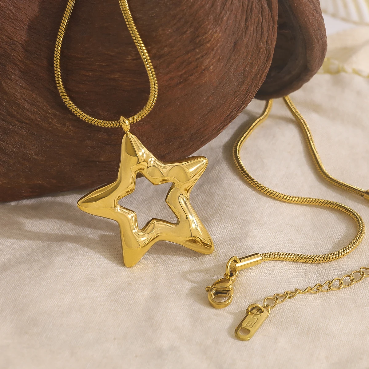 WILD & FREE Asymmetrical Star Stainless Steel Pendant Necklace for Women 18K Gold Plated Trendy Glossy Waterproof Jewellery