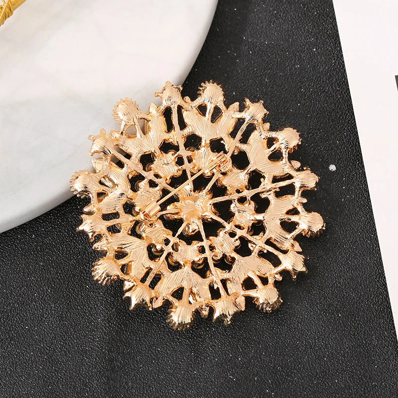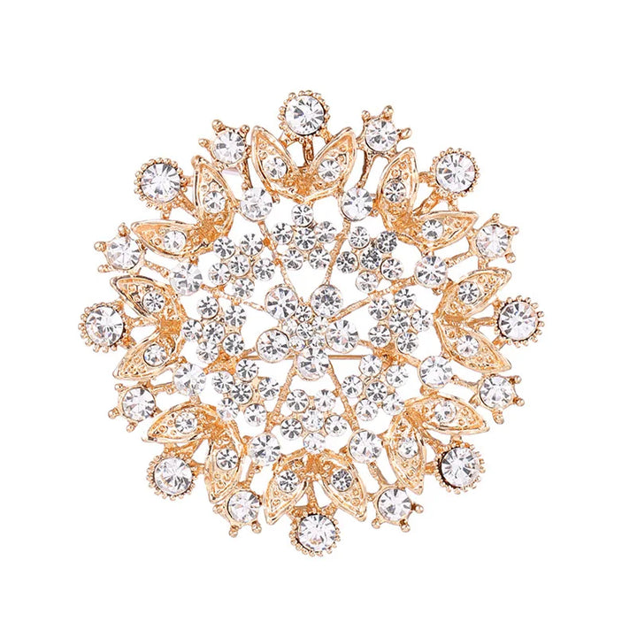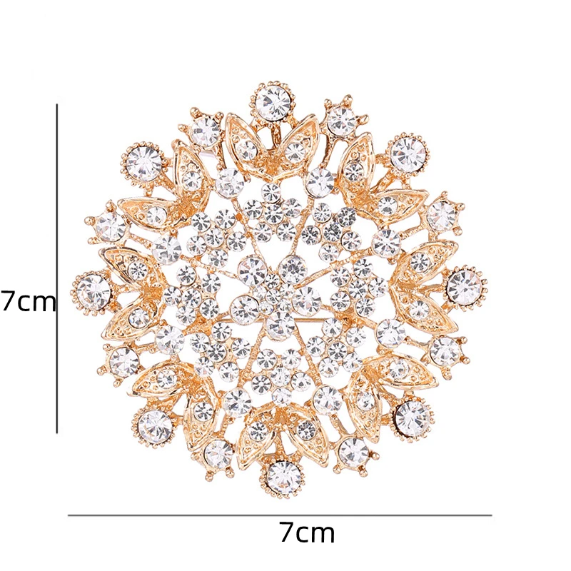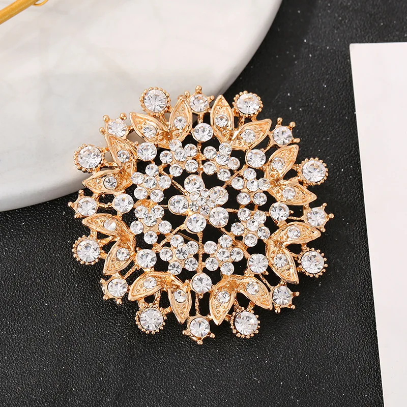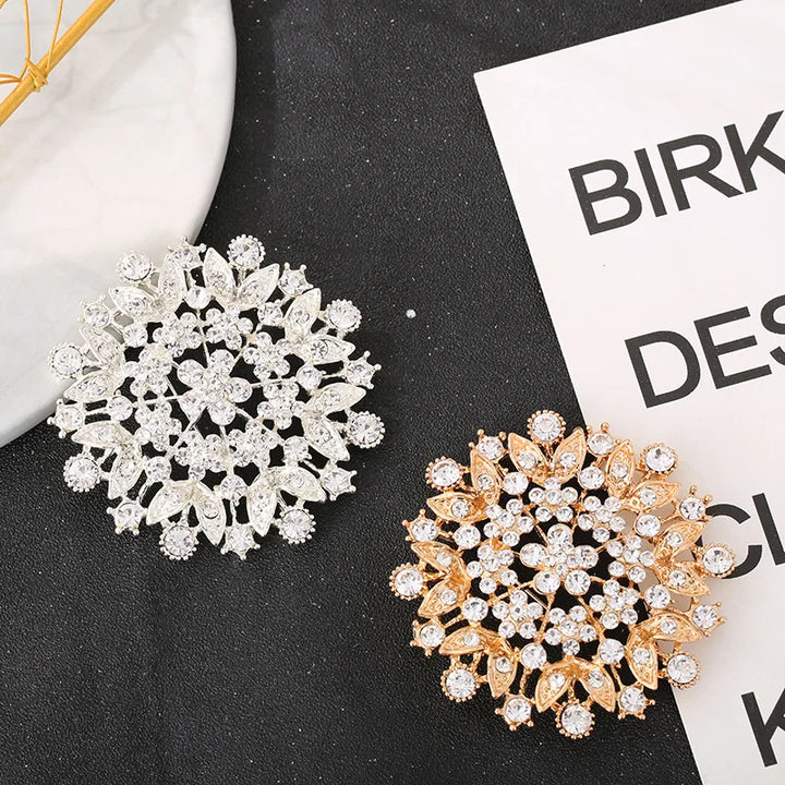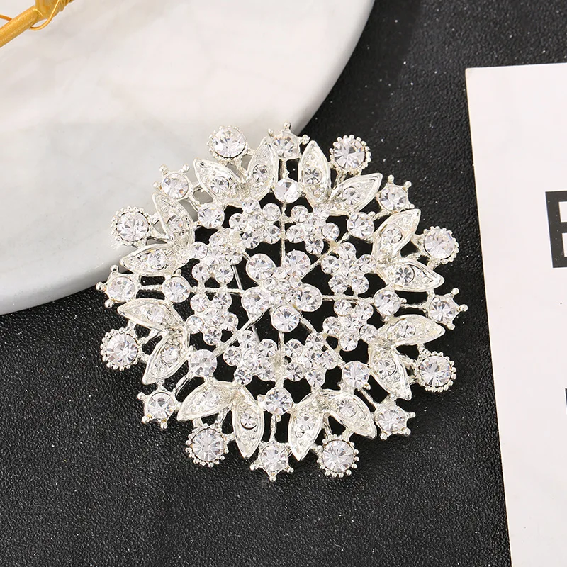 Women Crystal Silver Color Flower Brooches for Wedding Bridal Party Jewelry Tail Shaped Rhinestone Round Bouquet Lapel Pins Badg