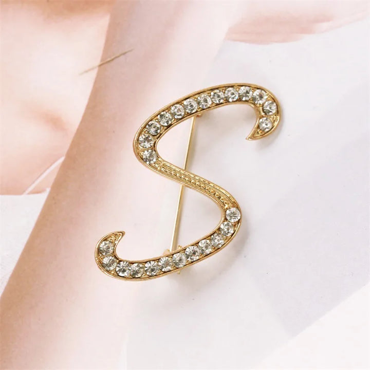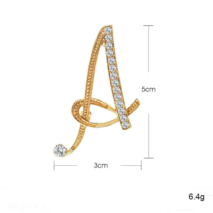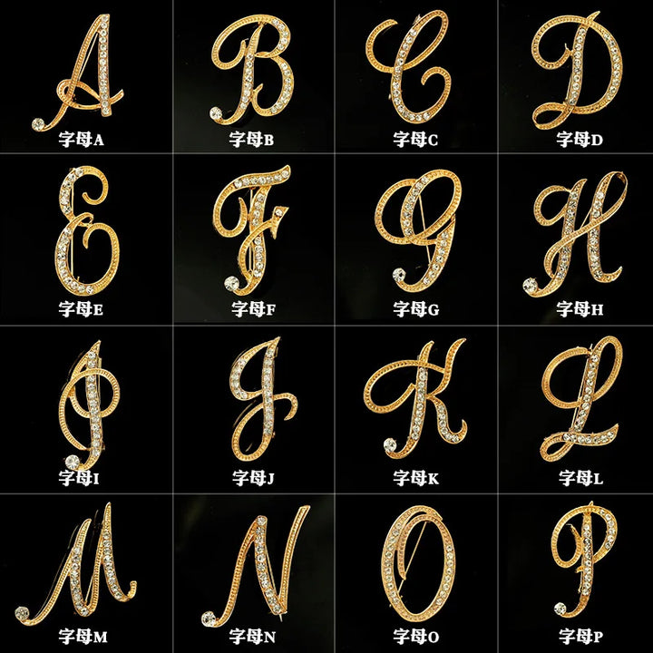 Women Men A-Z Letter Brooch Rhinestones Crystal Gold Color English Alphabet Metal Pins Cute Jewelry Accessories Christmas Gift