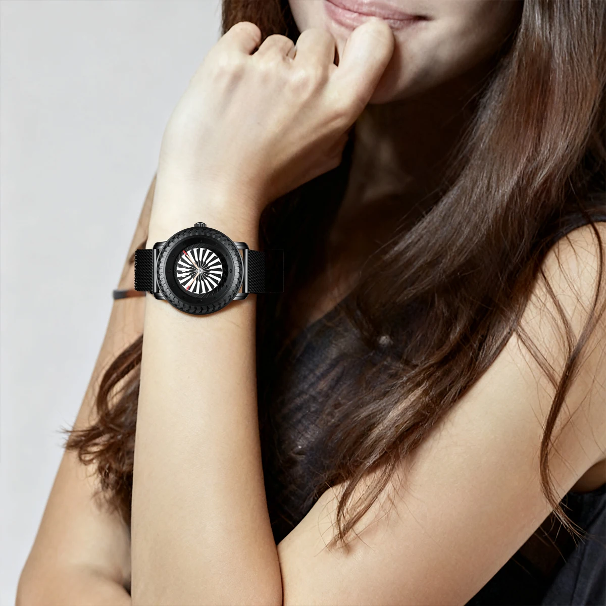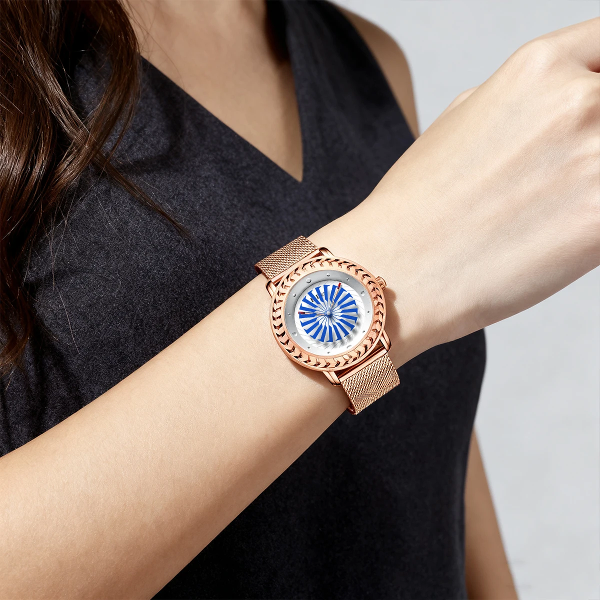 Women's watch, creatively designed fashionable watch, personalized windmill second hand, women's casual waterproof quartz watch