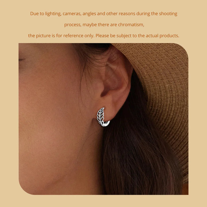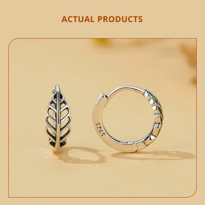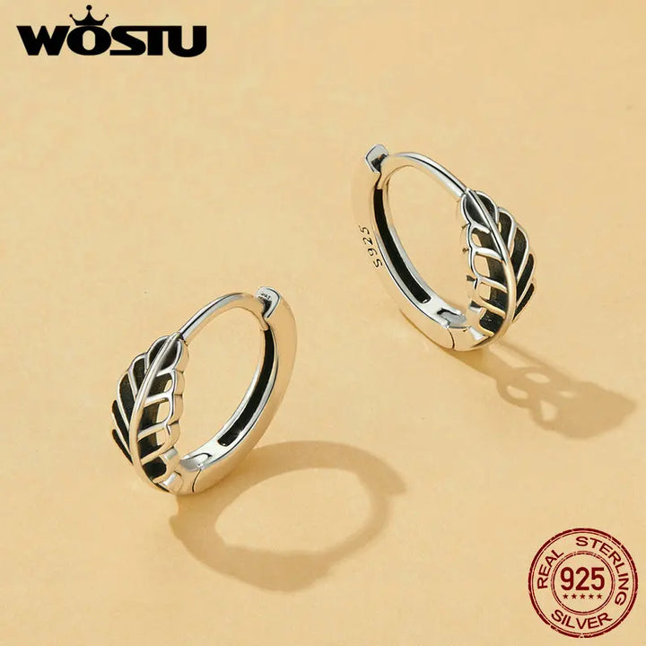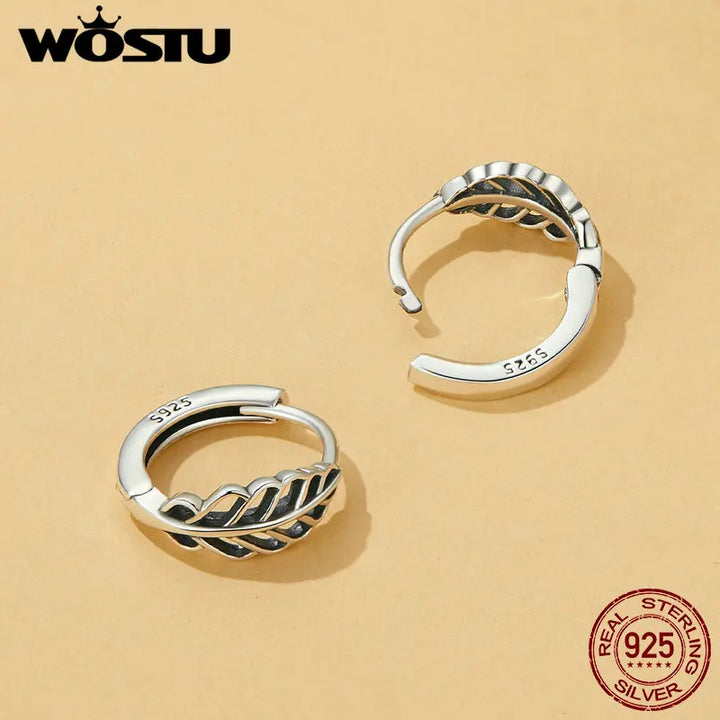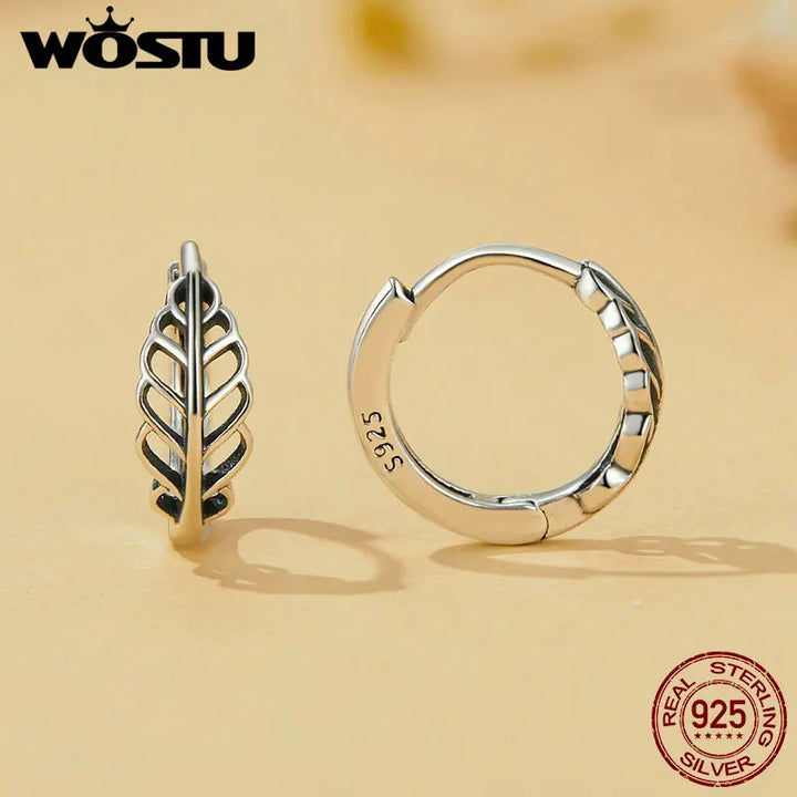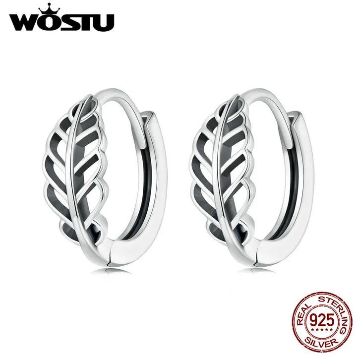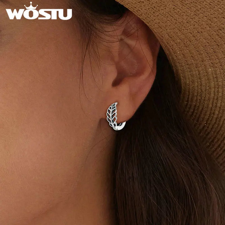 WOSTU Simple Hollow Out Leaf Earrings For Women Real 925 Sterling Silver European Hoop Earrings Girl Party Jewelry Gift